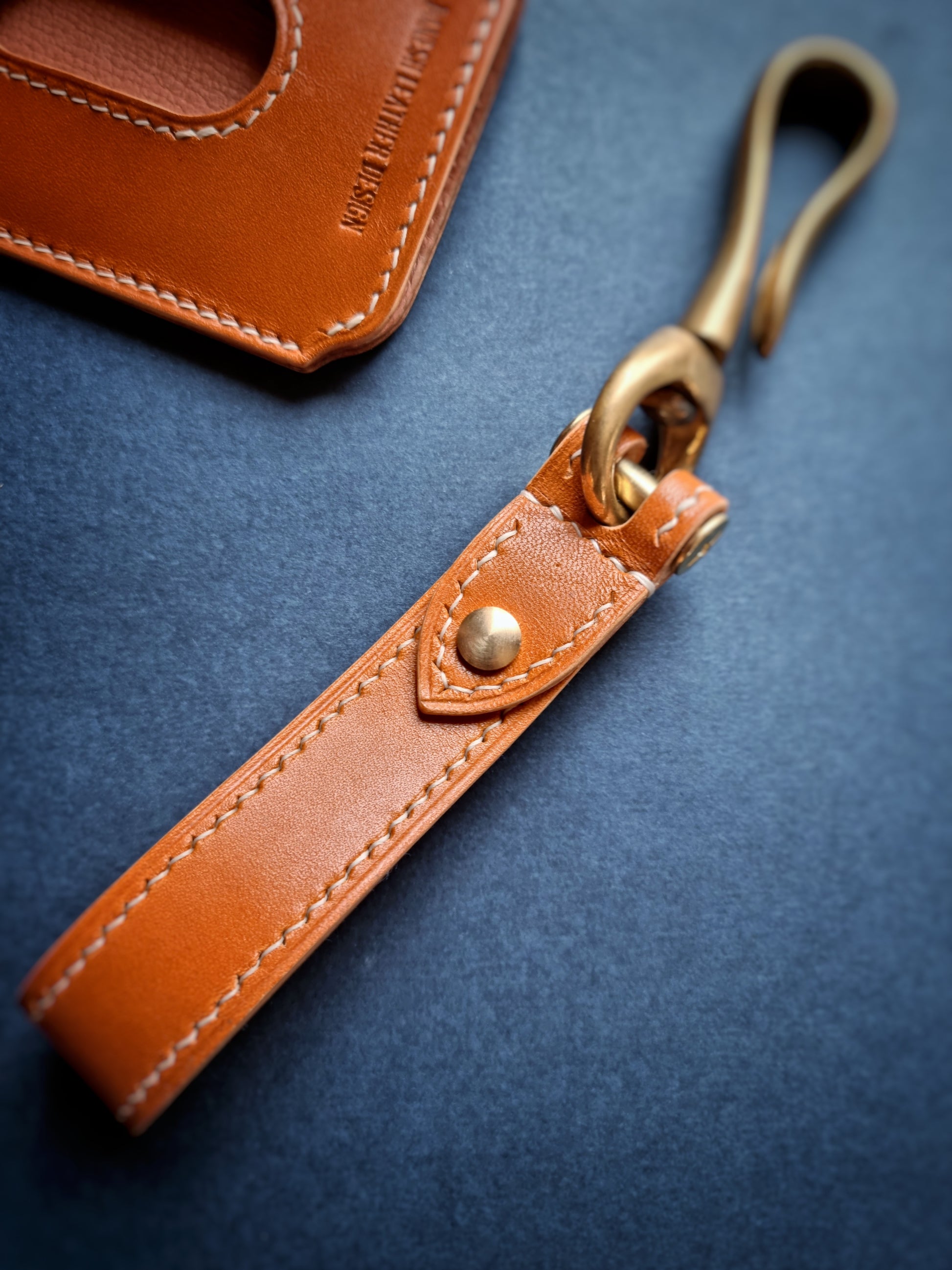 Handcrafted from vegetable tanned leather in ochre and natural tan