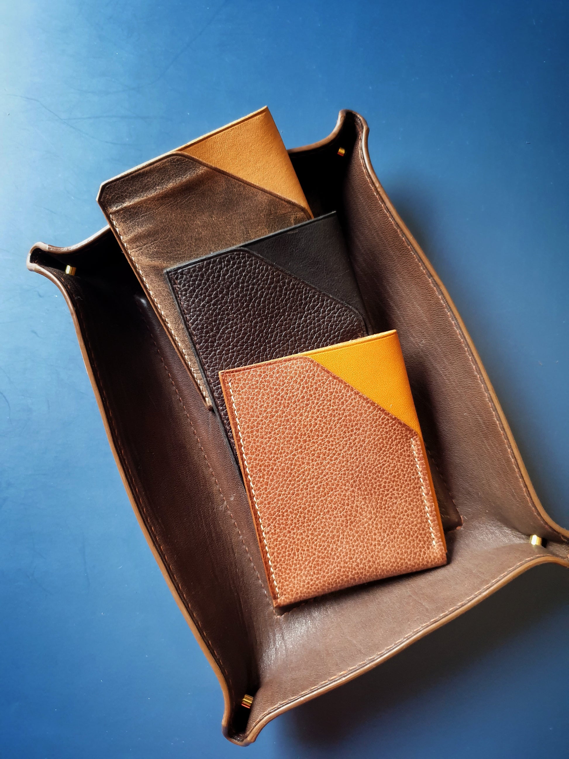 Minimal carry folded wallet handcrafted from calf skin in two tone, has enough space for cards and folded cash.