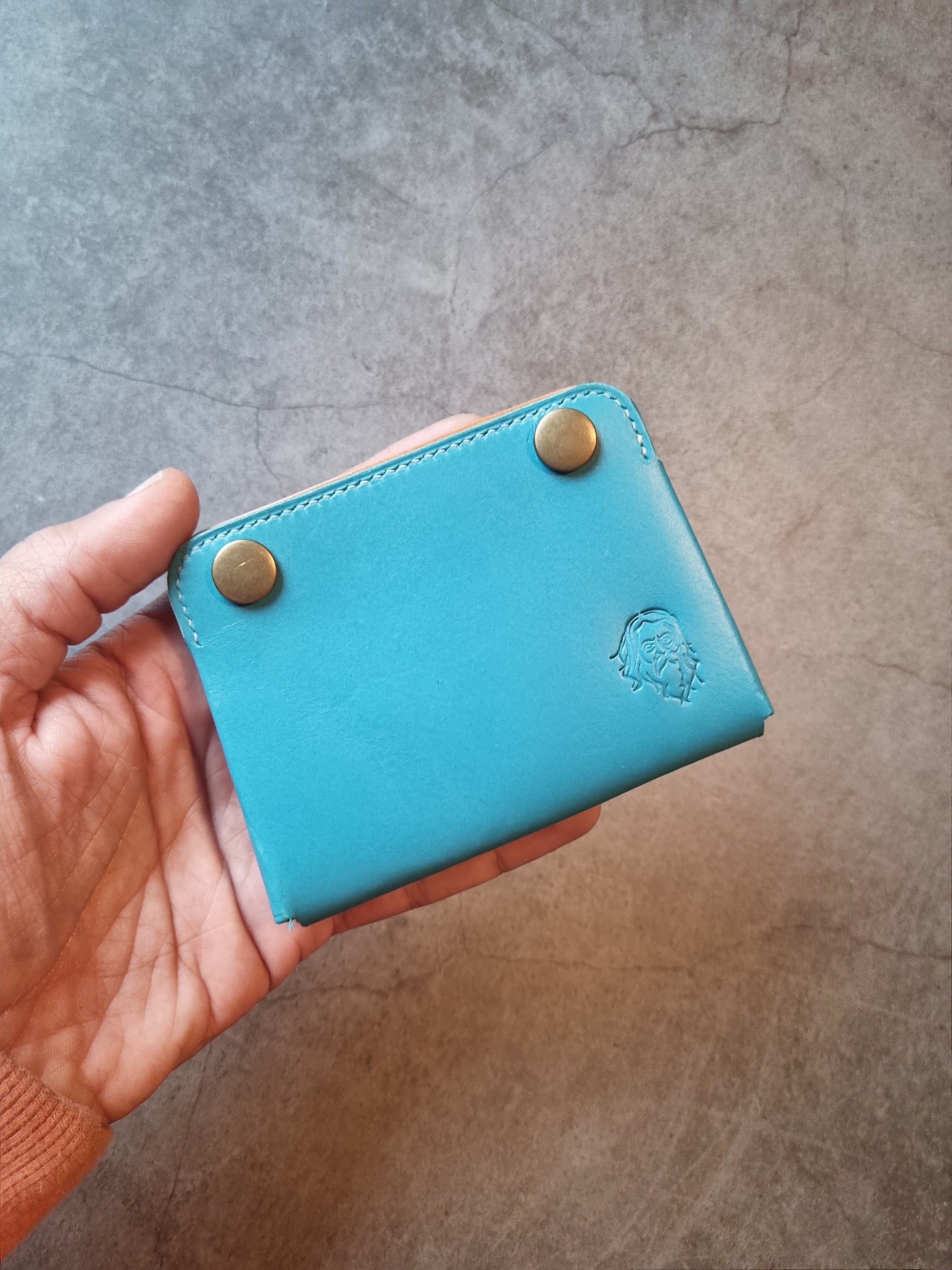 the Flounder is quite small, at 10X7cm, which can fit in a phone bag or pants pocket easily. It is made from Italian vegetable tanned leather and available in many colours, so you can send an email with your special requests including name or initial embossing, snaps colours (bright colours, silver, brass, gold, gun metal).