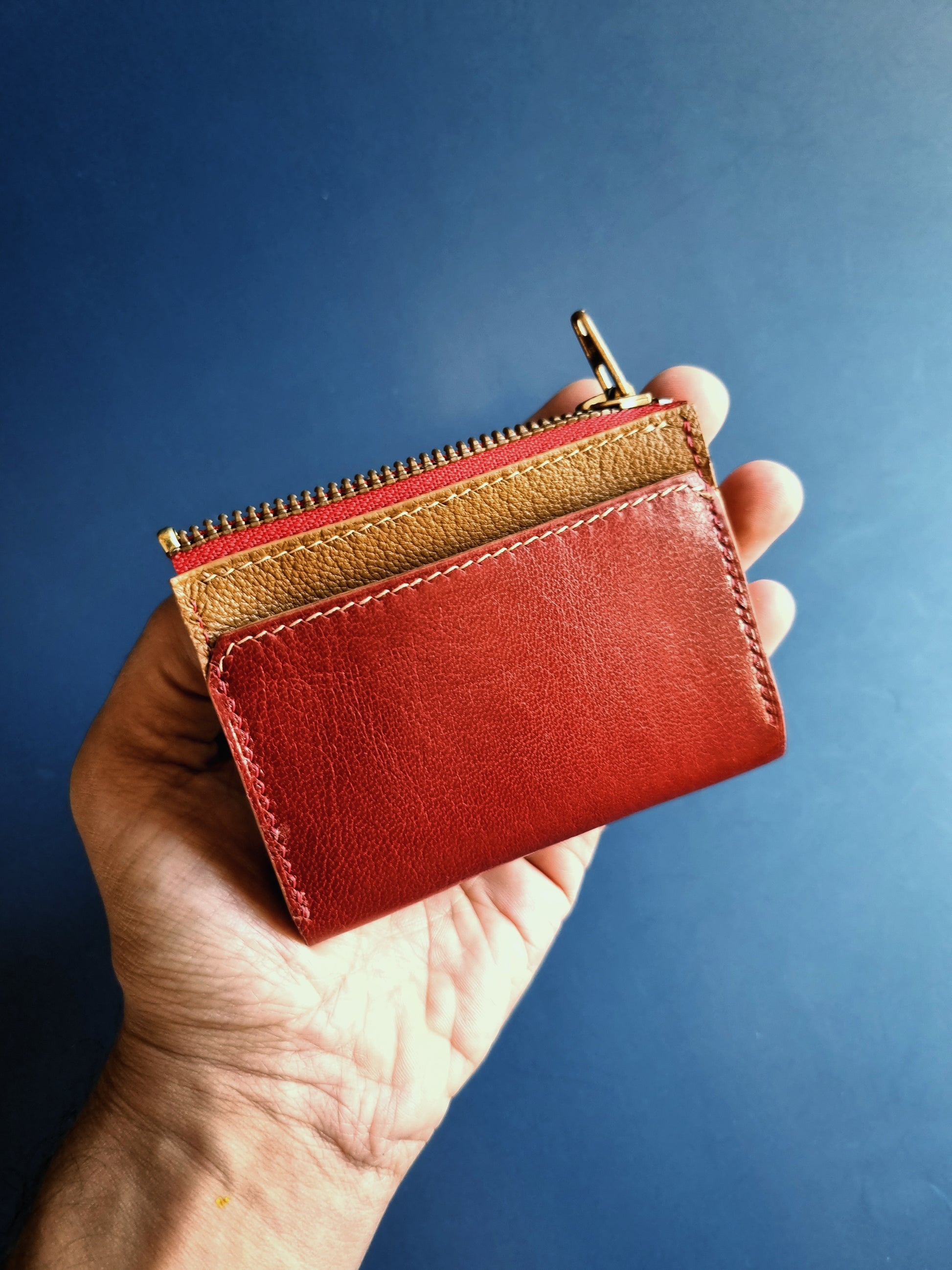 Handcrafted from brilliant french goat and Italian goat skin, the zipper wallet is a small but spacious elegant wallet.