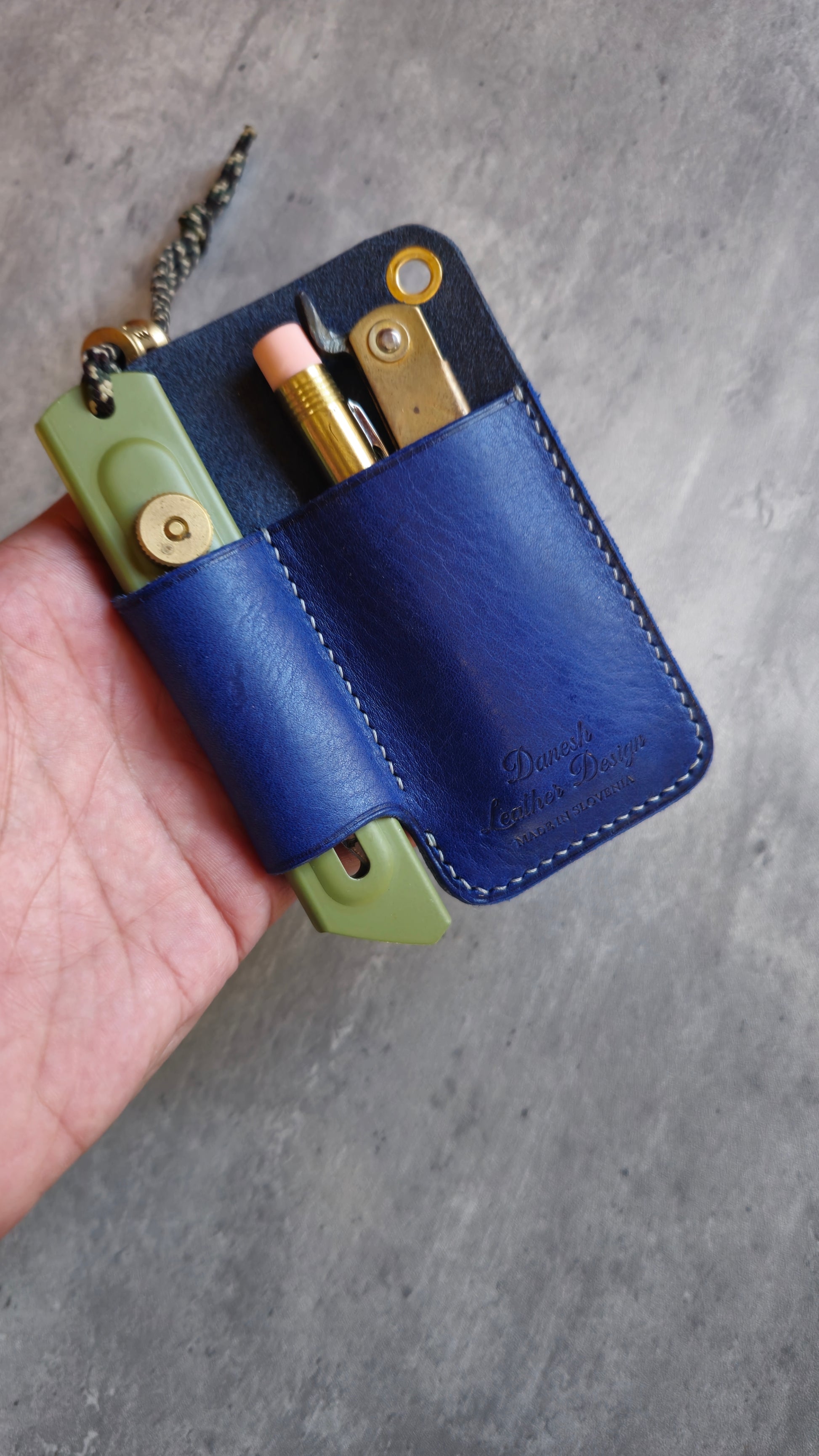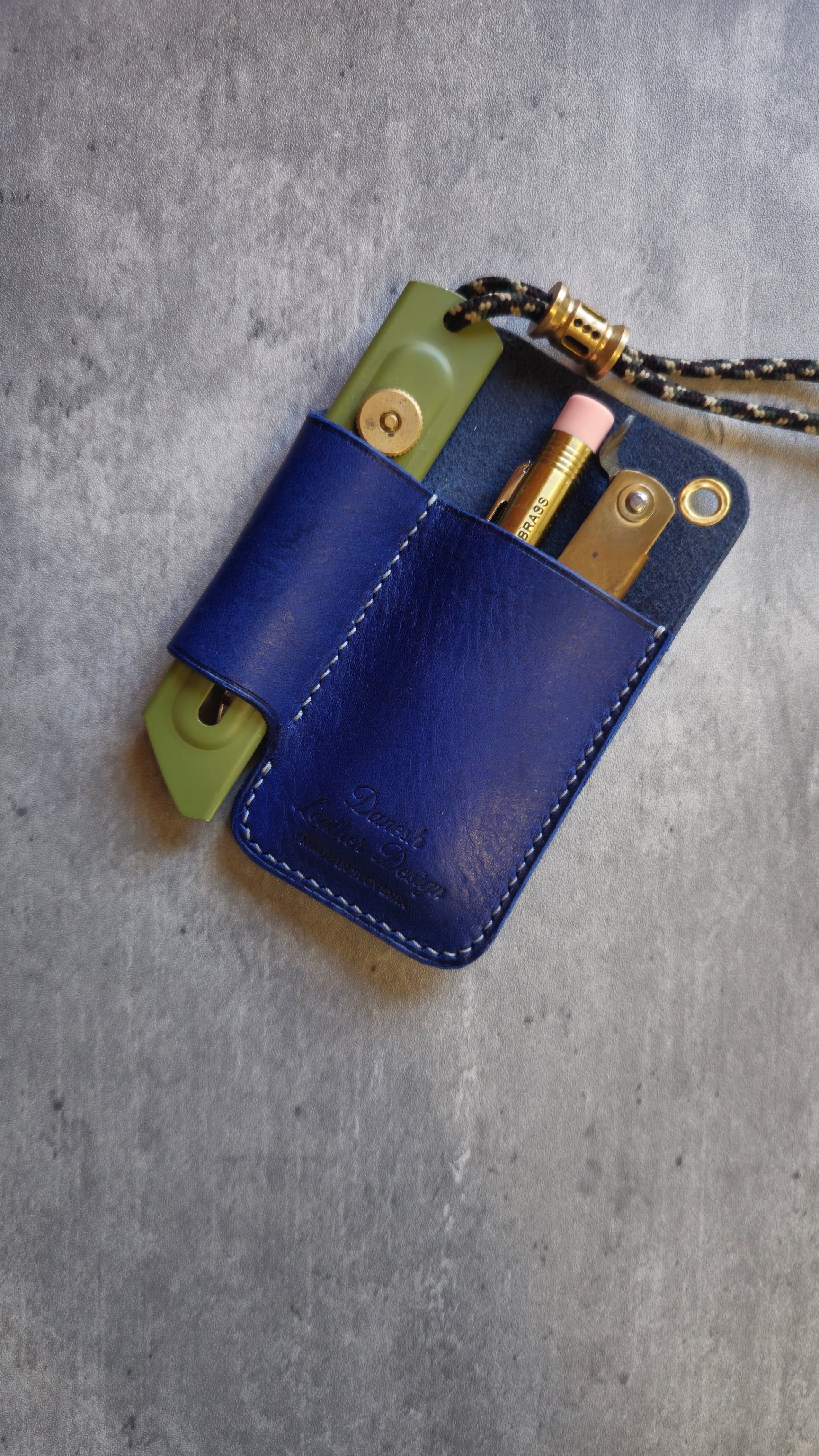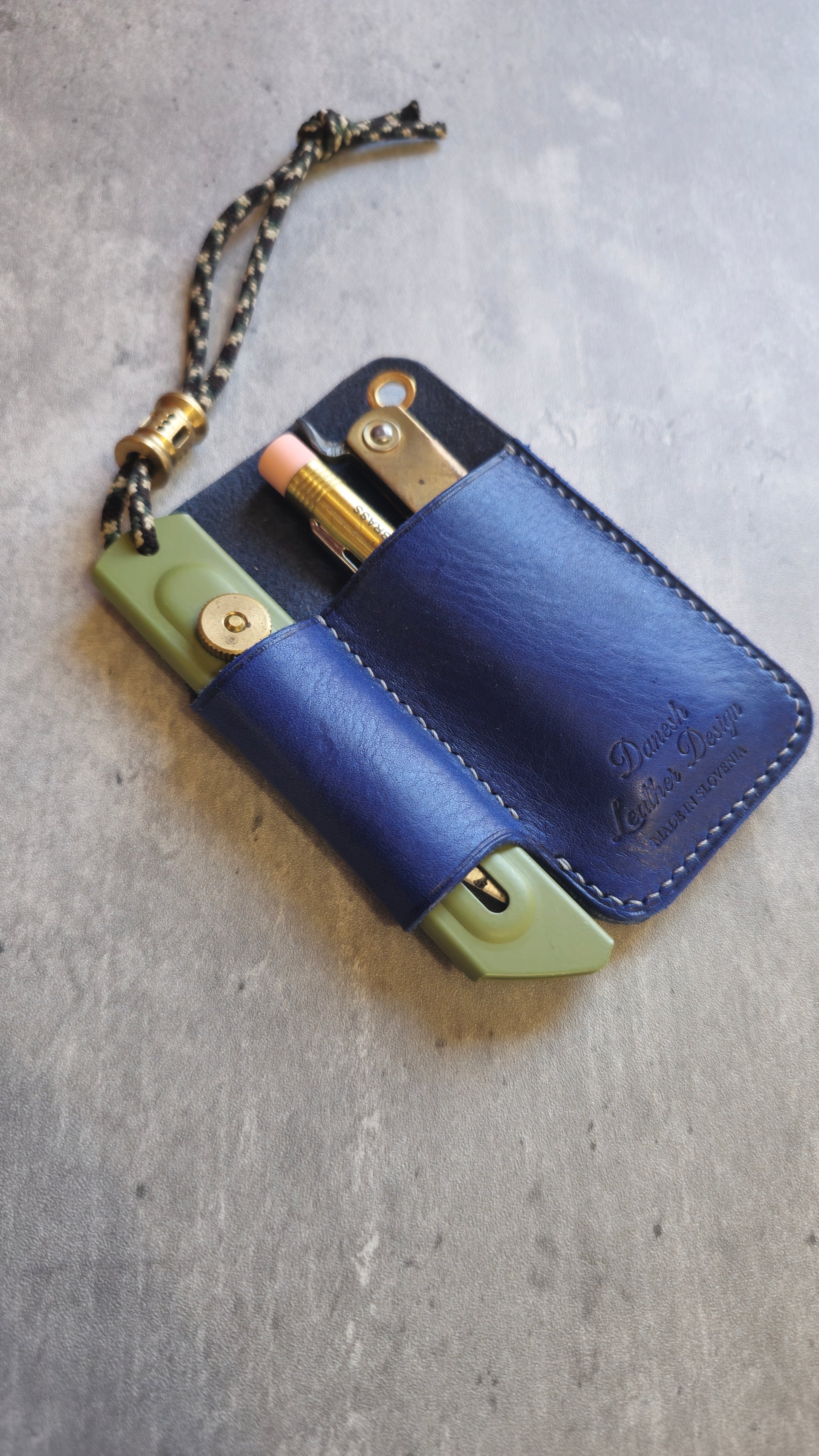 The theme is outdoors with lots of space for multi tools, pens, flashlight and more. Wallet A is larger and can take a large batch of cards. Wallet B is smaller and more stealthy.