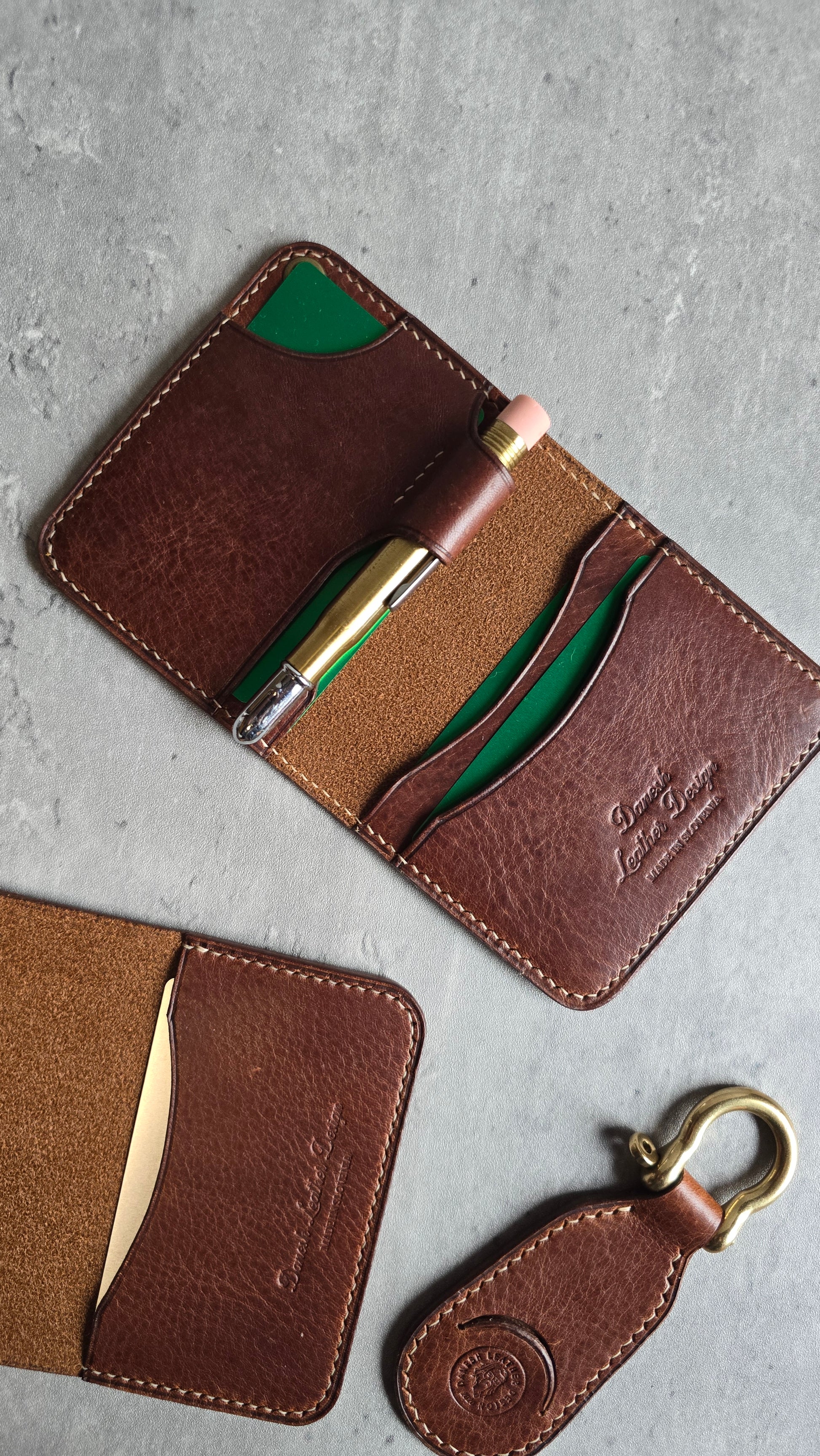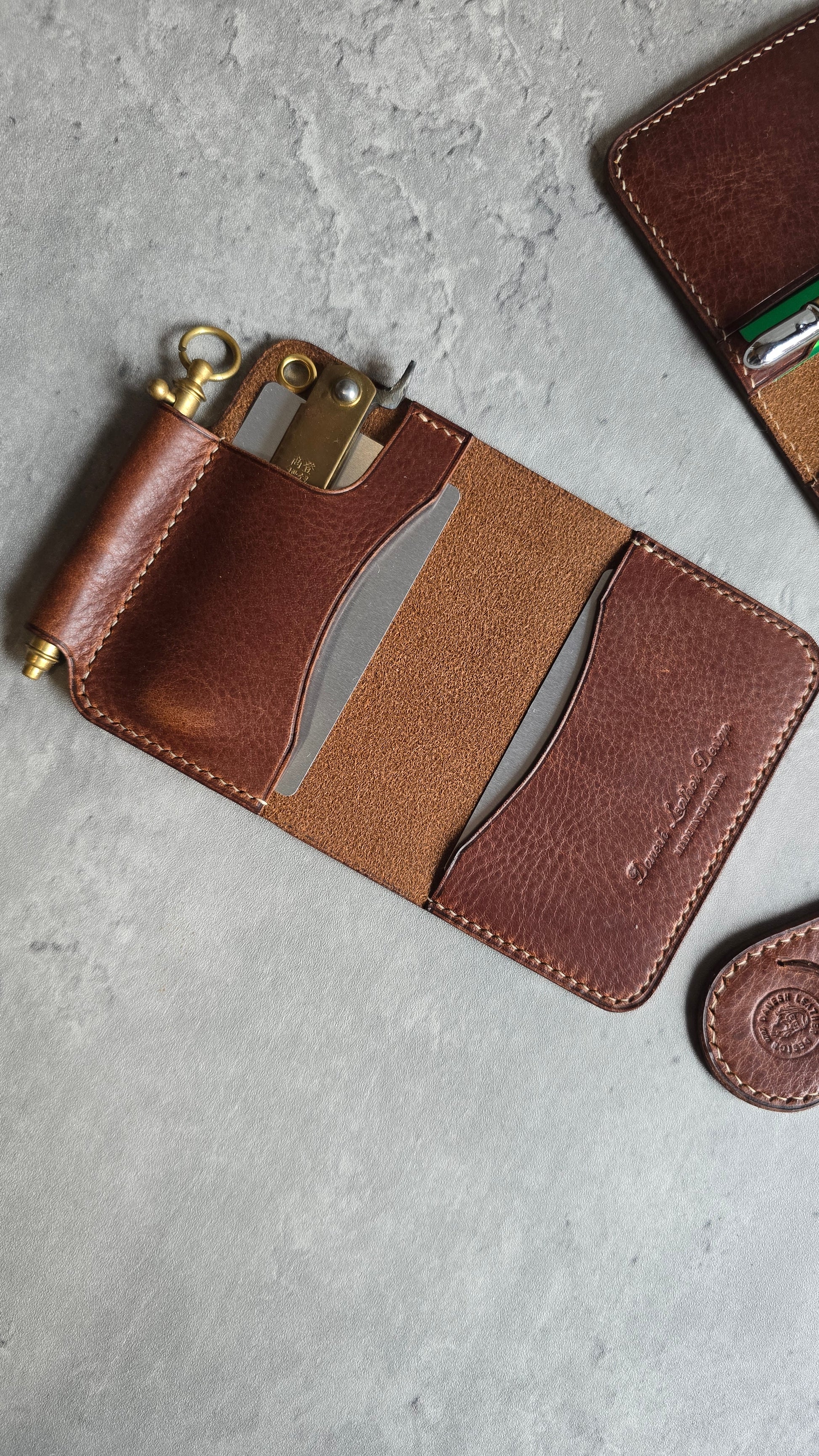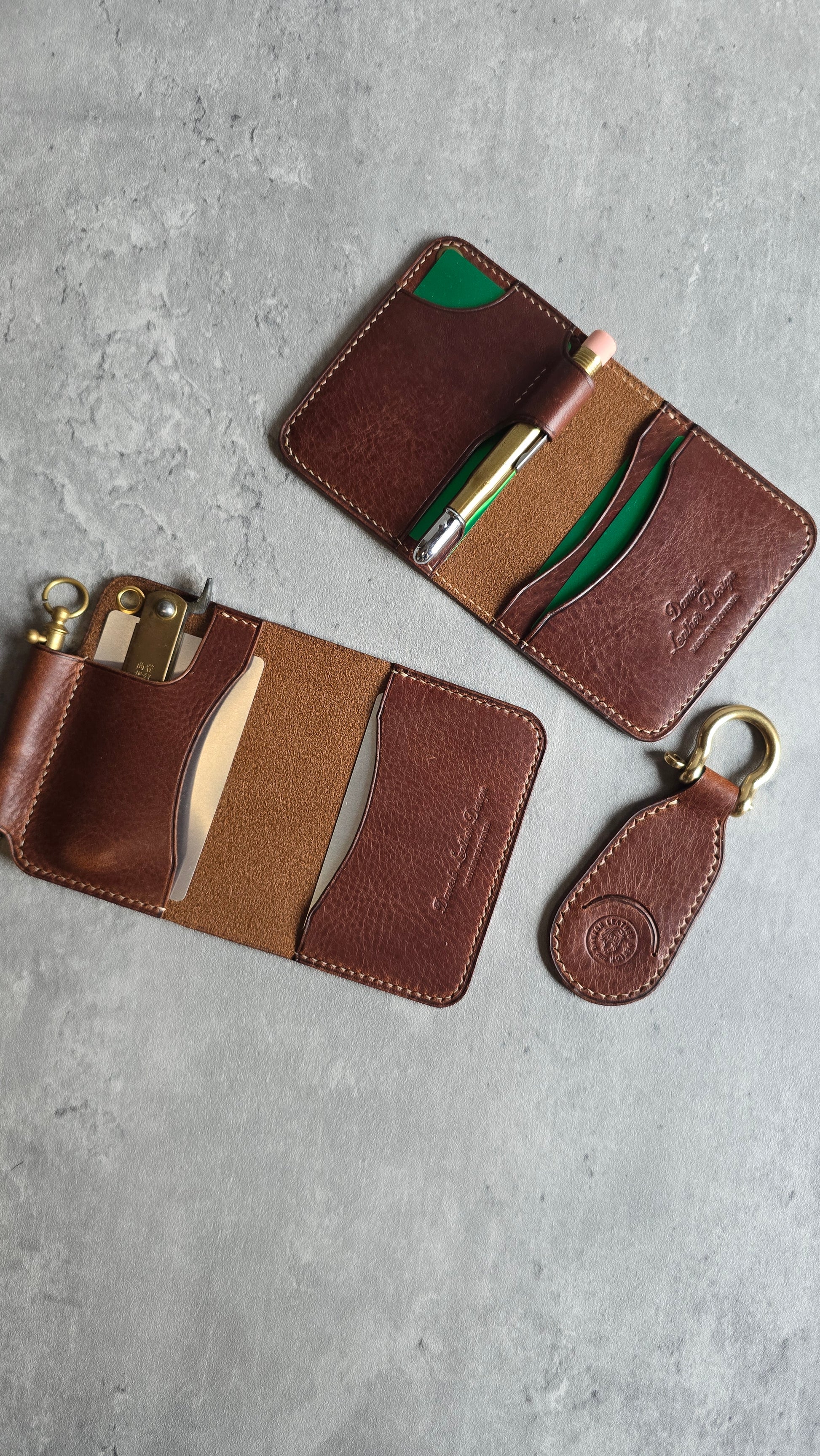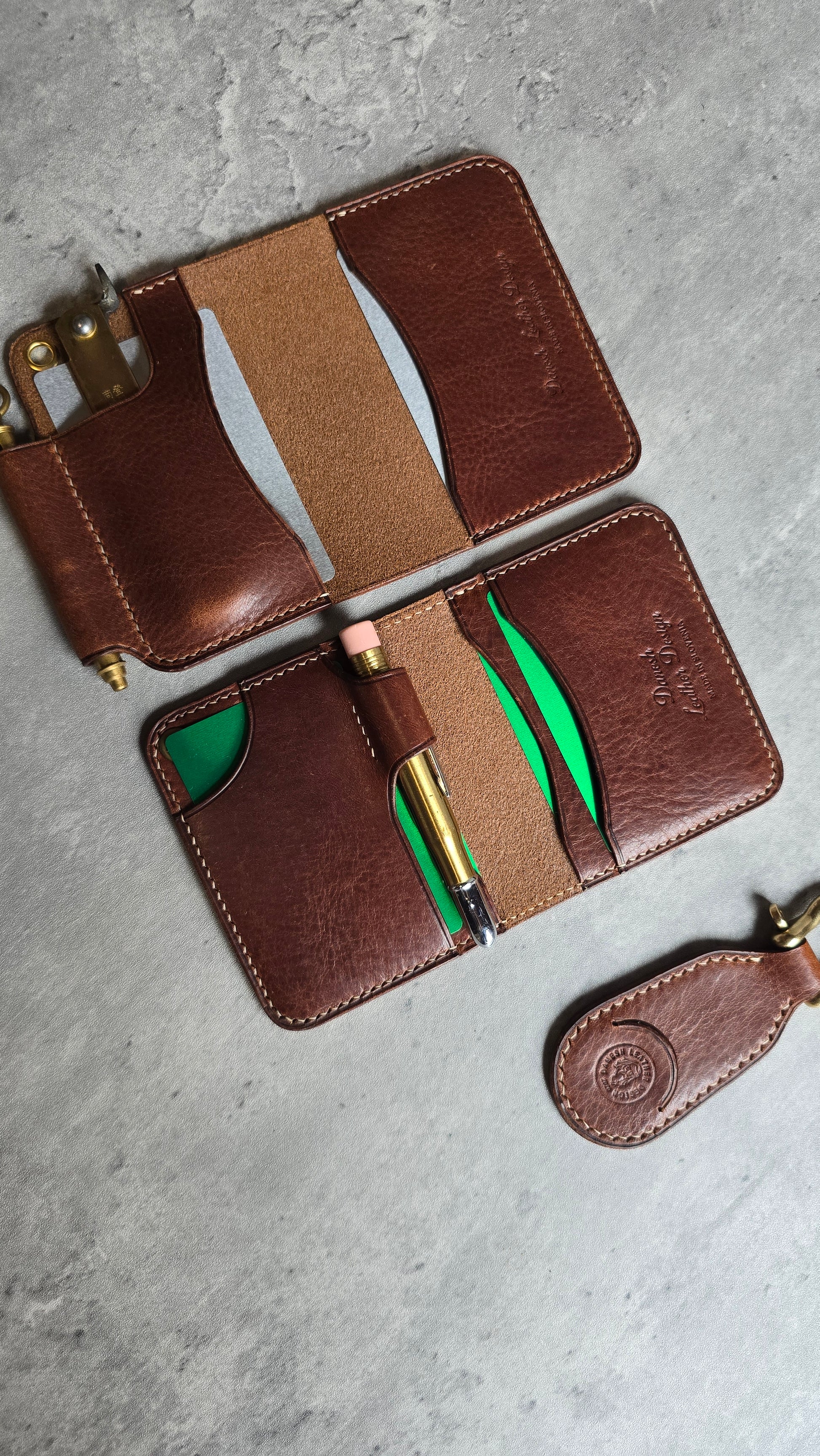 The pack includes 2 different wallets in 3 versions, a tools sleeve and a coin keychain.
