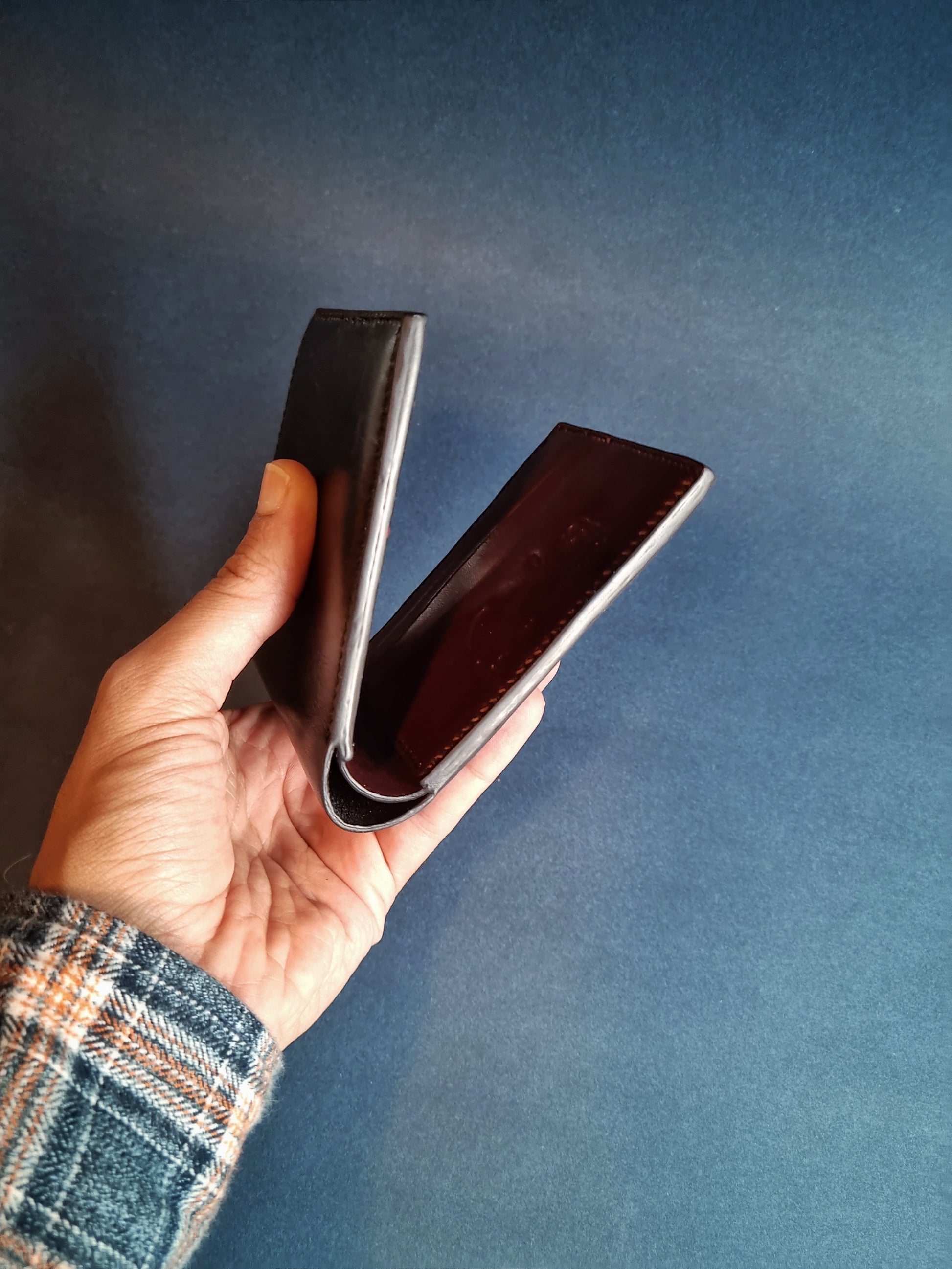 High quality and slick design, the Bordeaux is a strong built and luxury looking Bifold features 9 pockets for all your cash and cards. Handcrafted from Italian vegetable tanned leather in vin rouge and shiny black