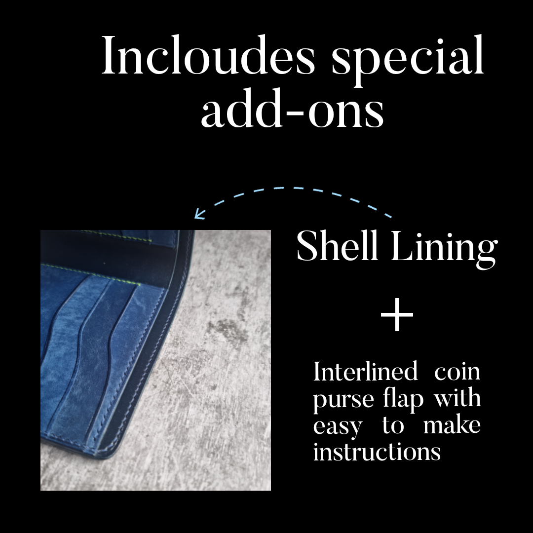 For this fun project, I recommend medium to firm tempered leather in 1.2 to 1.8 mm thickness (thinner for the inside and thicker for the wallet's shell. In case if lining, i personally use 2 layers of 1.2mm combining hard and softer temper to create the perfect shell.