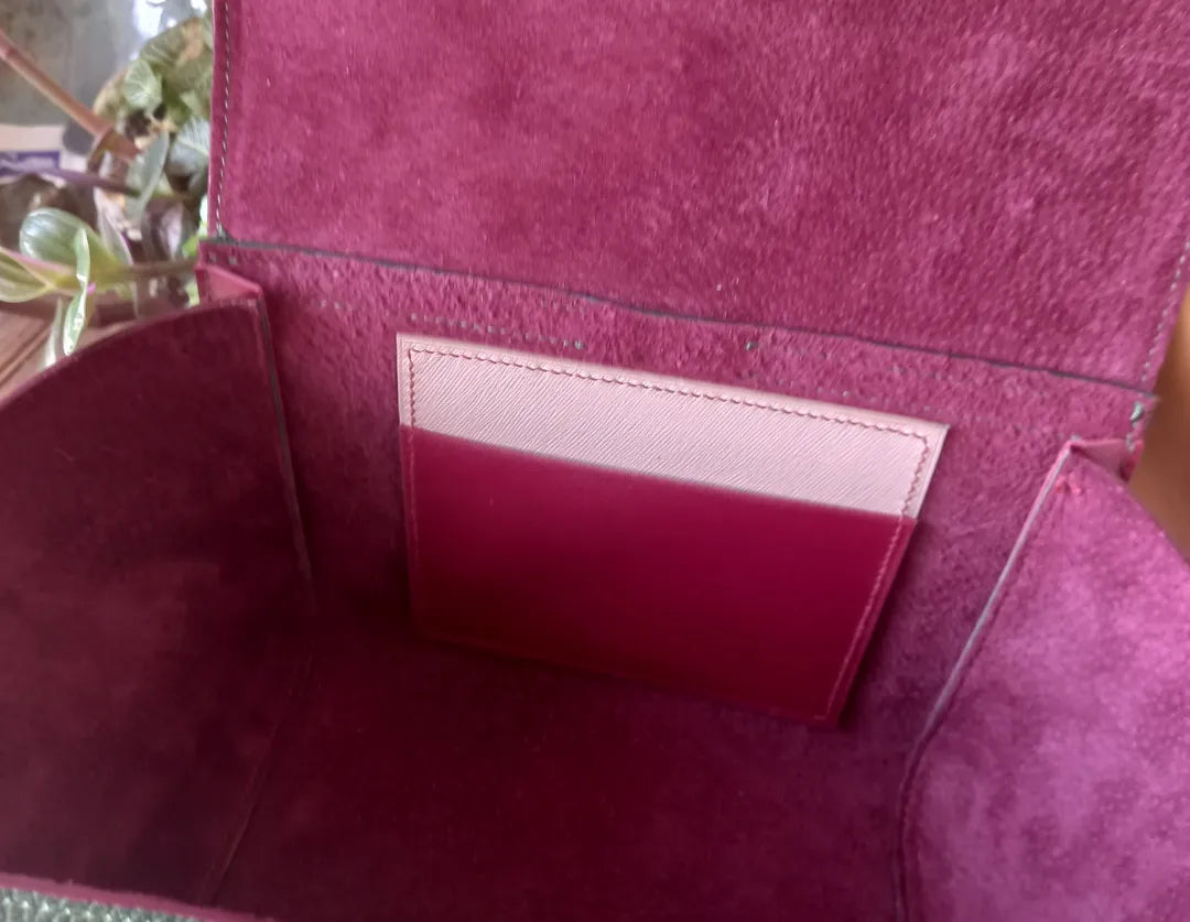 Classy handbag design, The Freya pattern is meant for intermediate and advanced makers. It has large capacity with its wide base and guests, the flap cover is designed with a unique handle and the pattern also arrived with a mini coin pouch / bag charm.