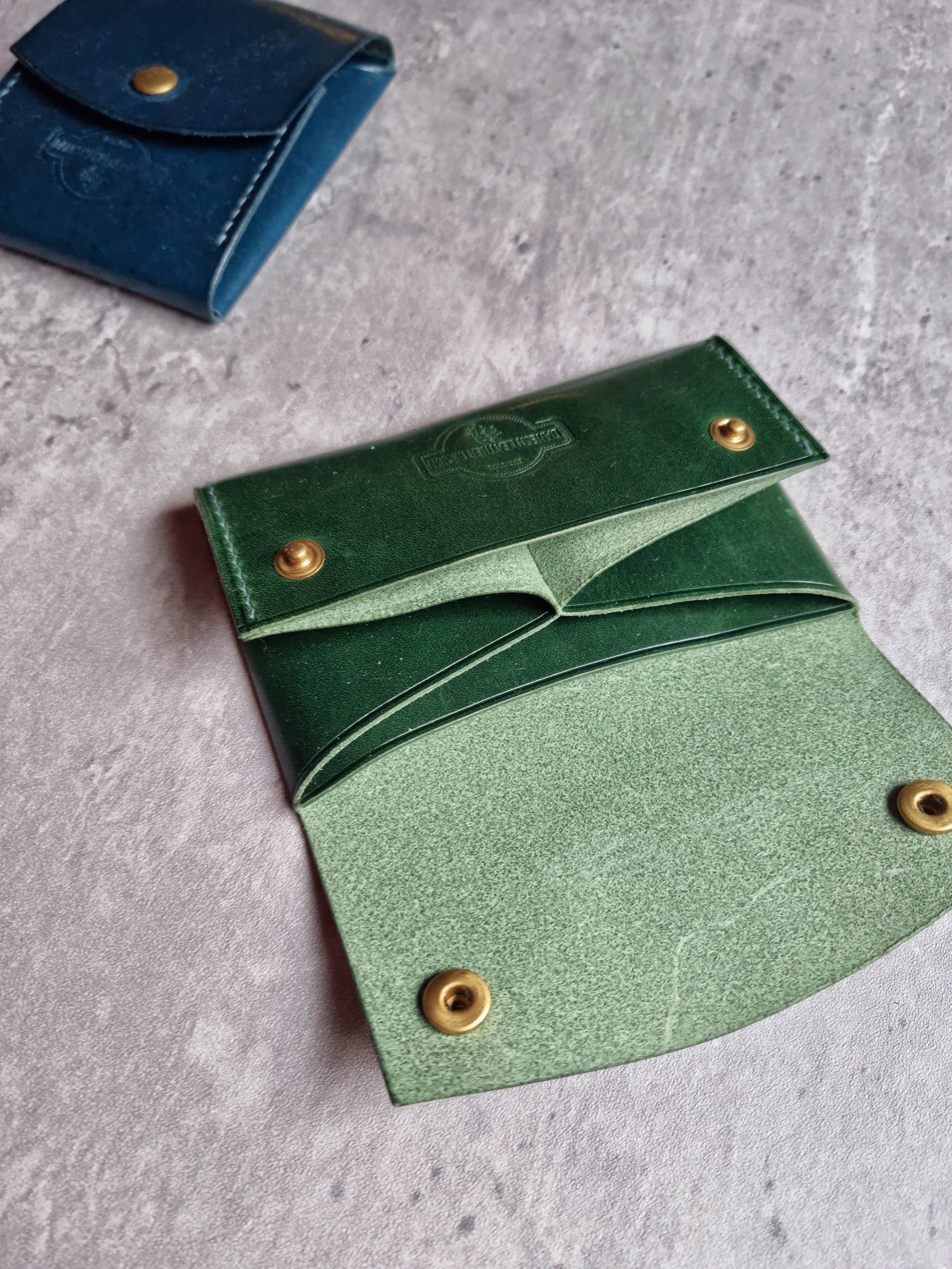 The Frog design includes 3 separate pockets for cash cards and coins. Both versions are made with two pieces of leather and they are fairly easy to make, I’d recommend them to any intermediate or professional makers.