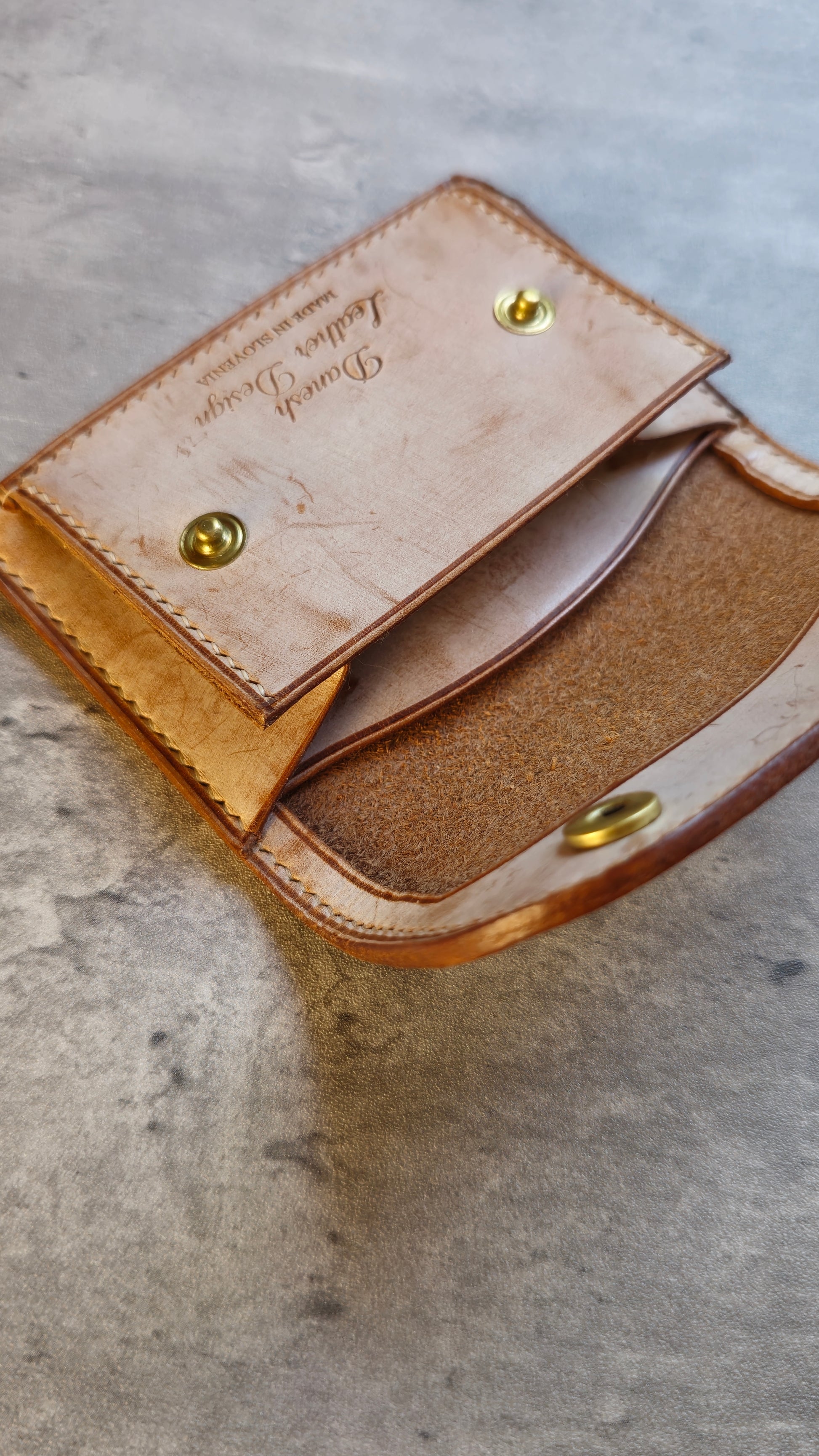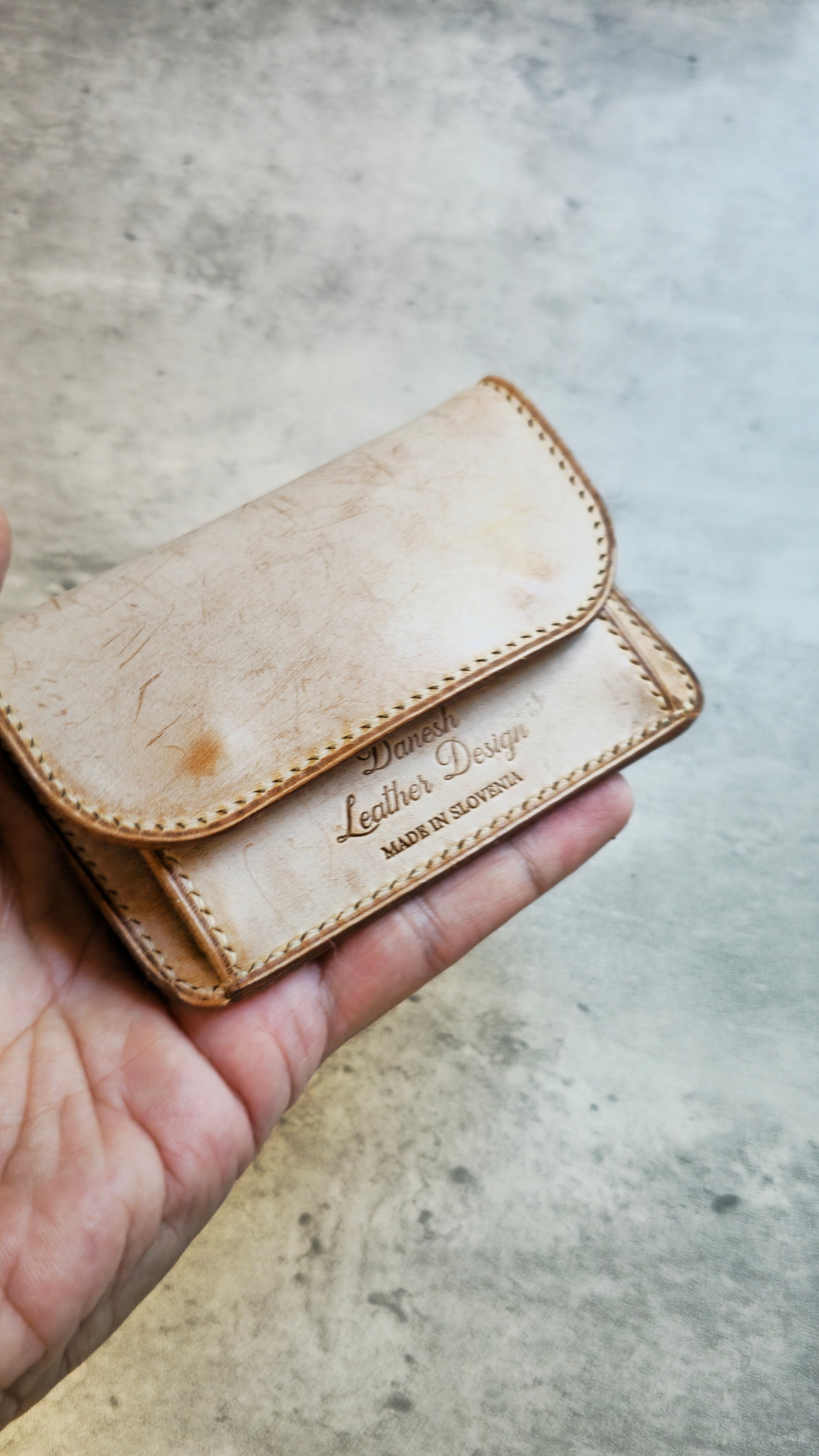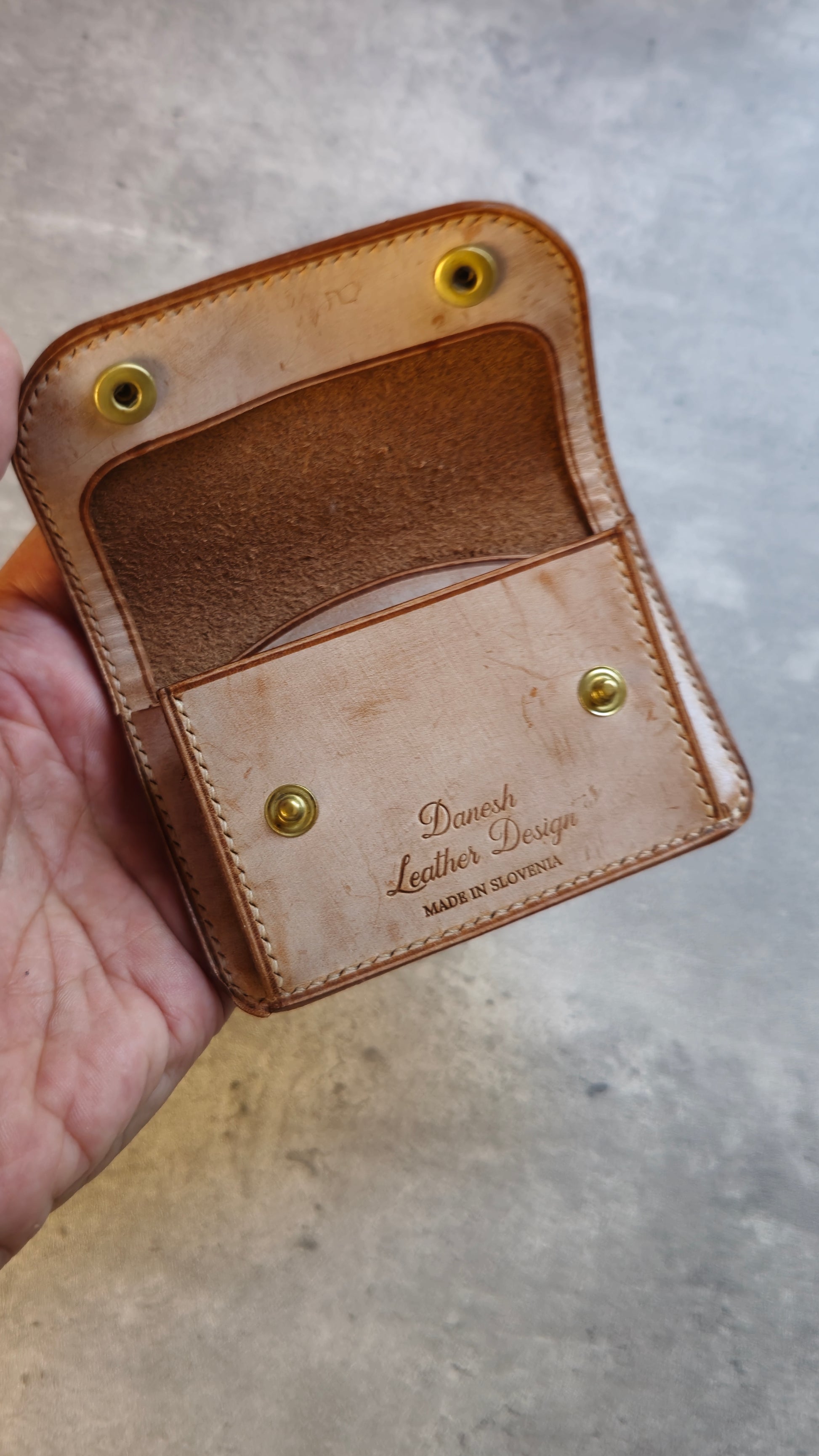 The Ragnar is a Japanese style mini wallet with two separate pockets for cards and cash (It takes coins too). The large flap with double snapps insures everything is safely tucked inside.