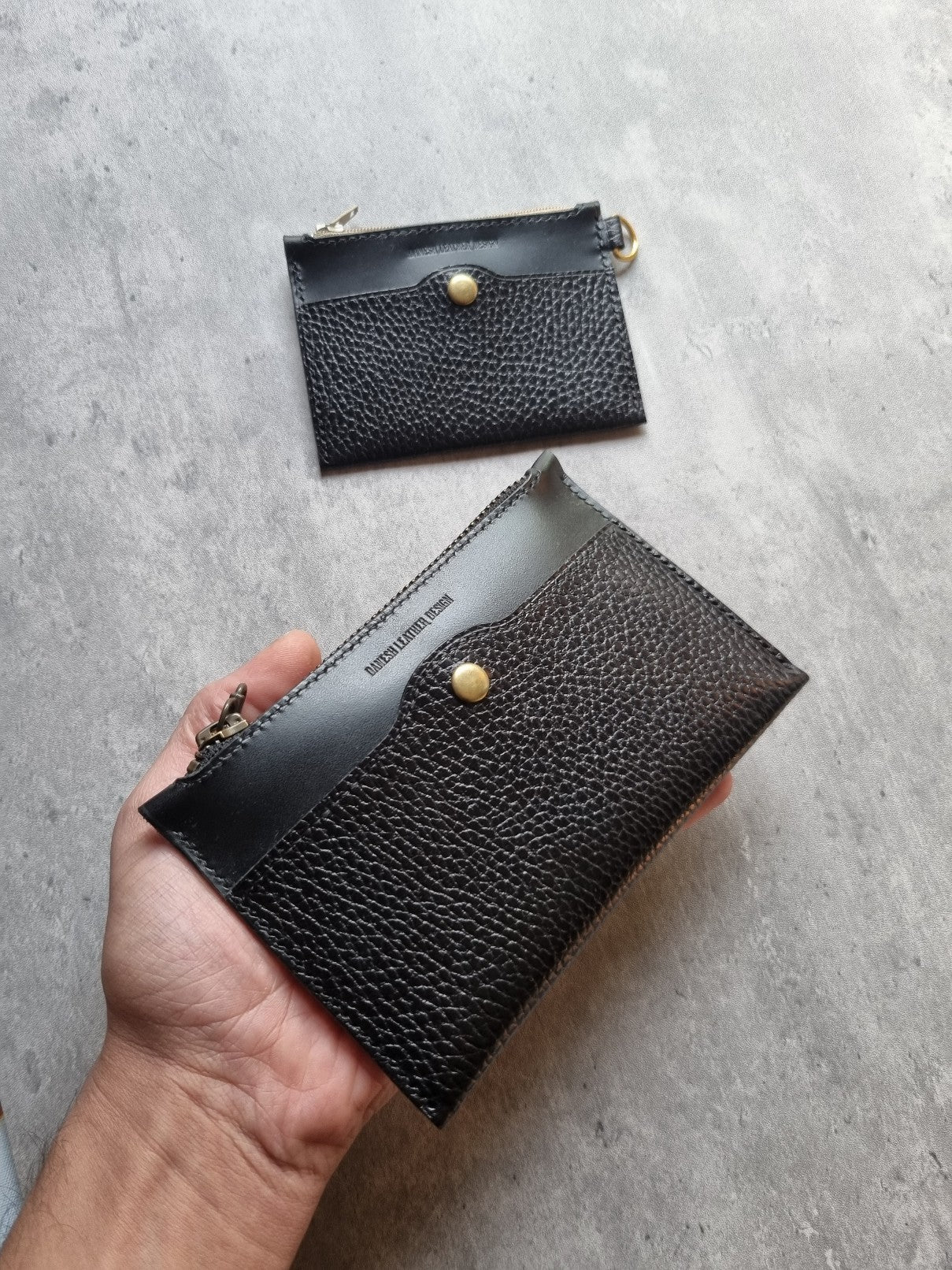The Astridย zipper wallet arrives in two versions. One is a clutch like with two inner pockets and the other, a mini version for cards and coins. Part of the luxury pattern line, the Astrid is slim and powerful. It can carry loads of cars, cash and coins. The mini version can carry 8 cards, folded cash and coinsย