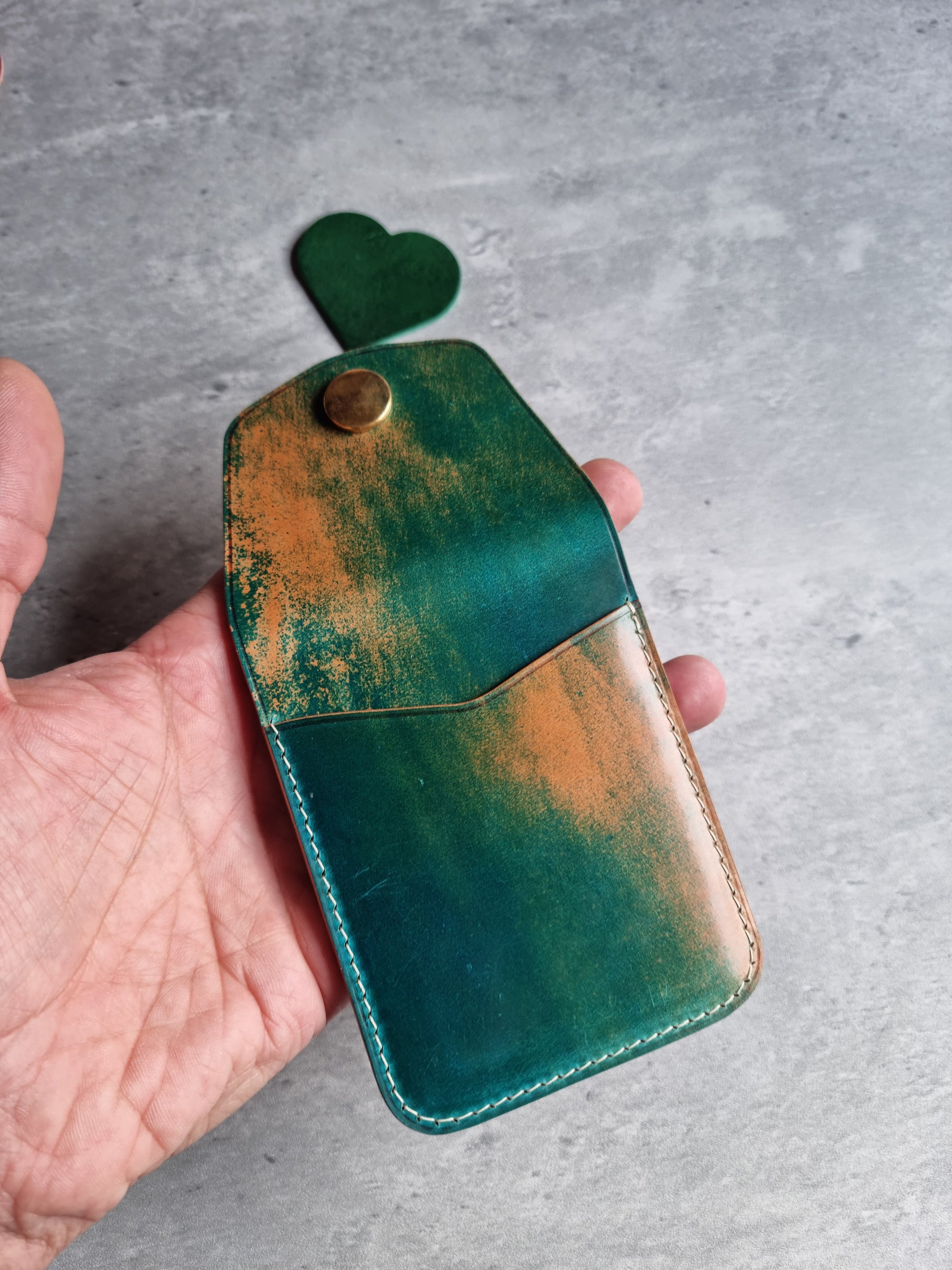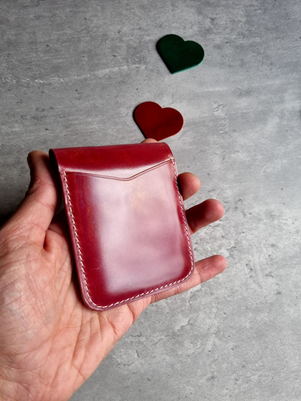 The El Greco HOLIDAY is a minimal and comfortable daily carry for cards and folded cash. It takes about 7-9 cards and a few bills. It features a front, back pocket, a beautiful curved flap and an optional flap liner where you can use to hide the snap button.