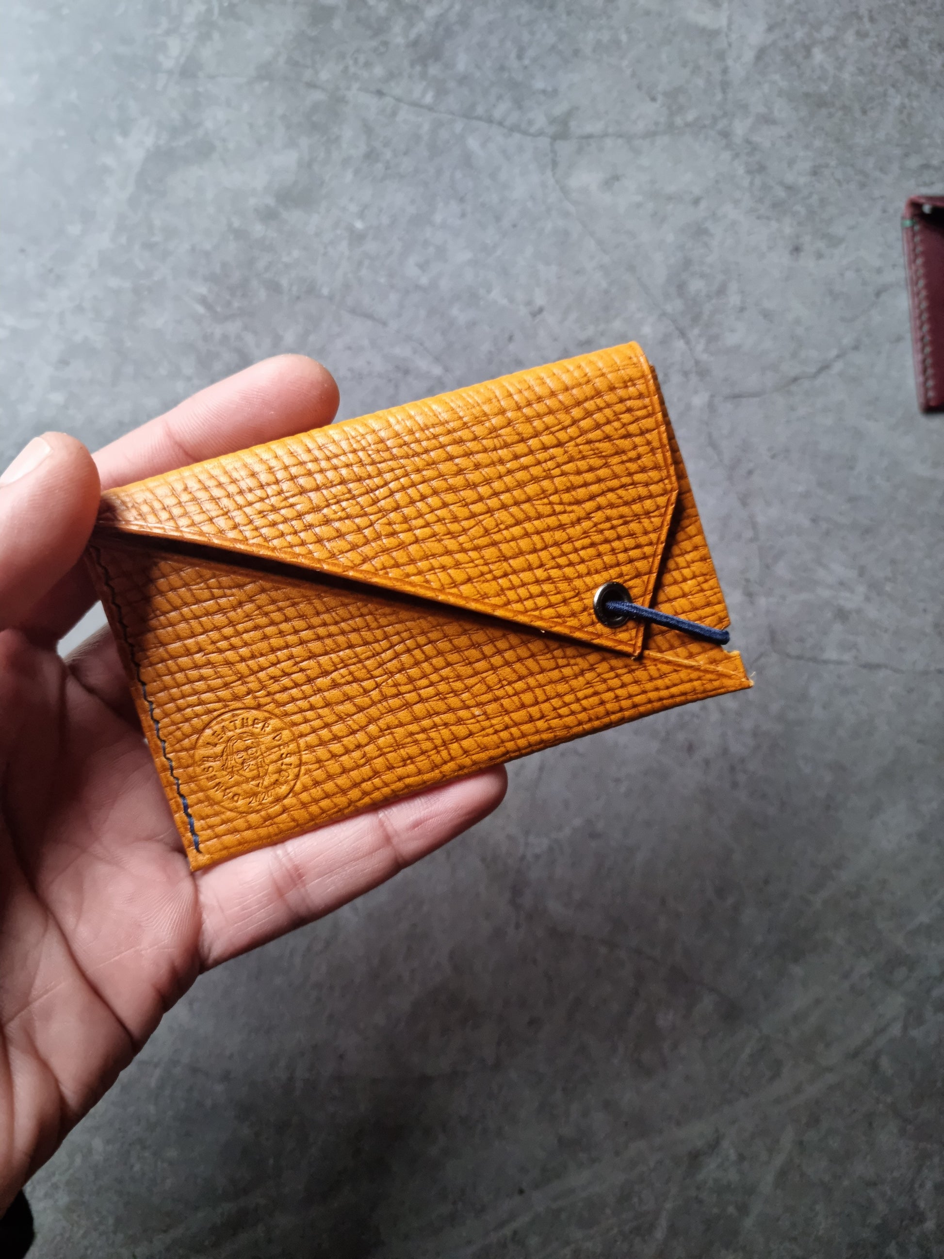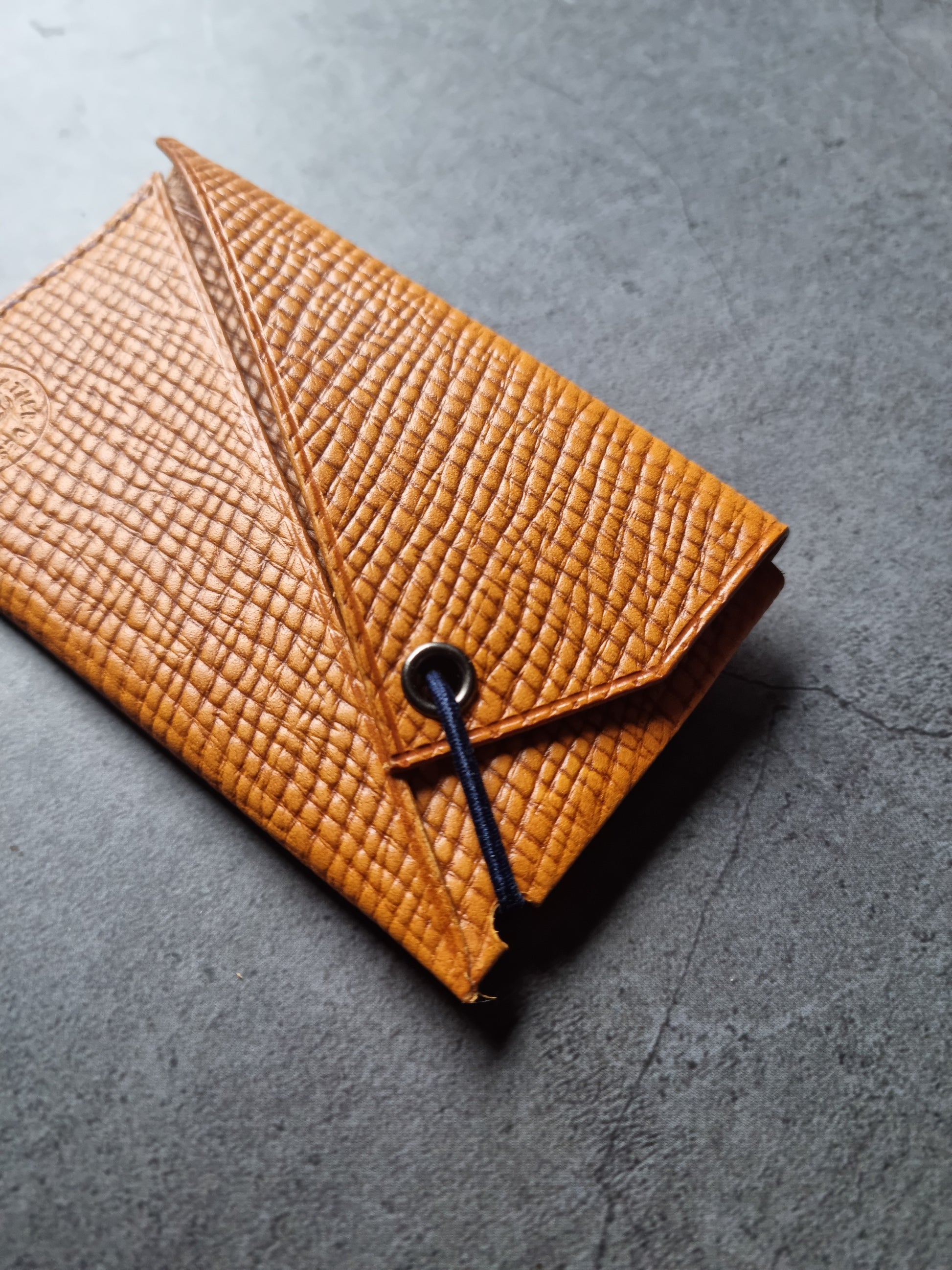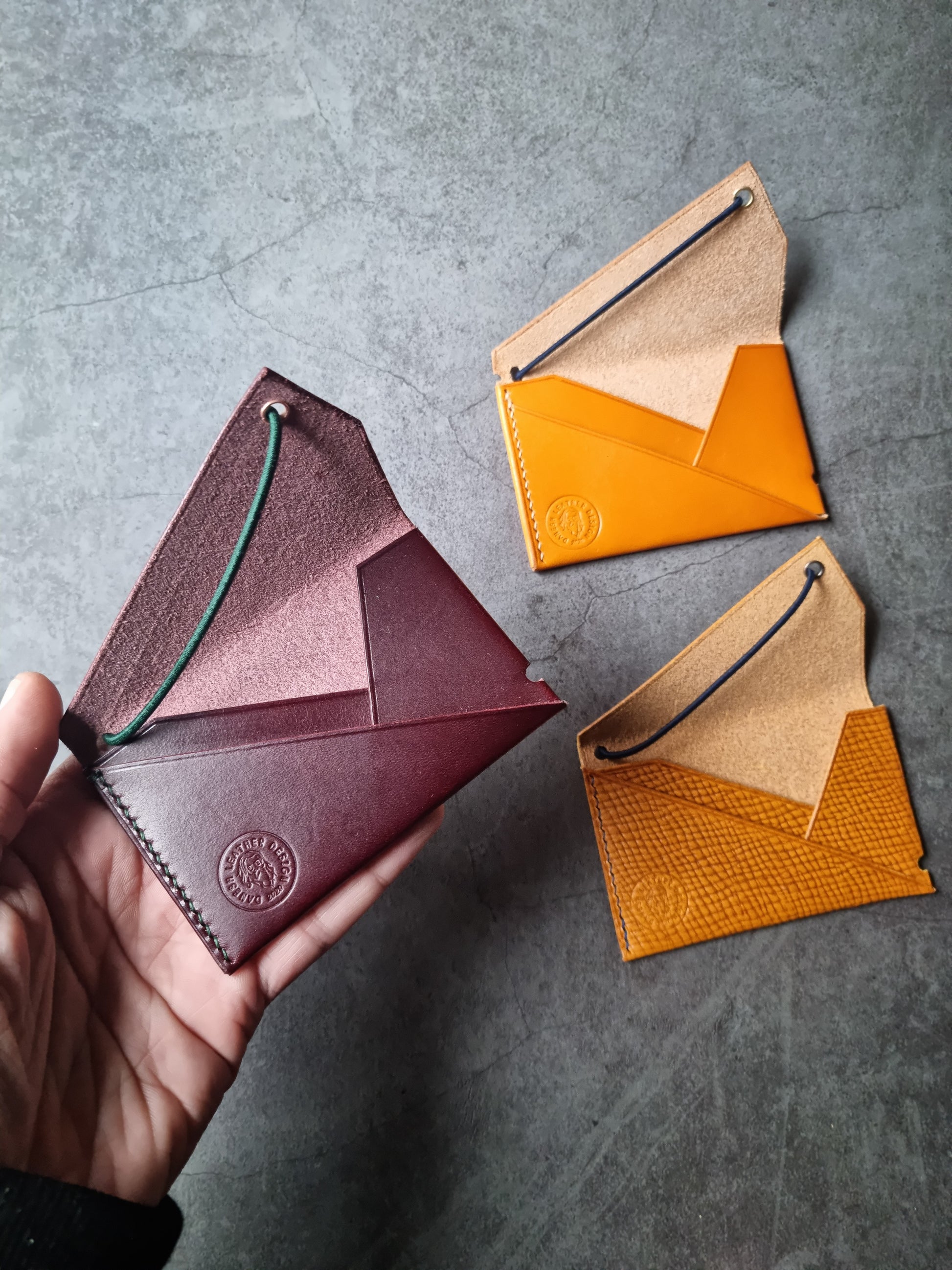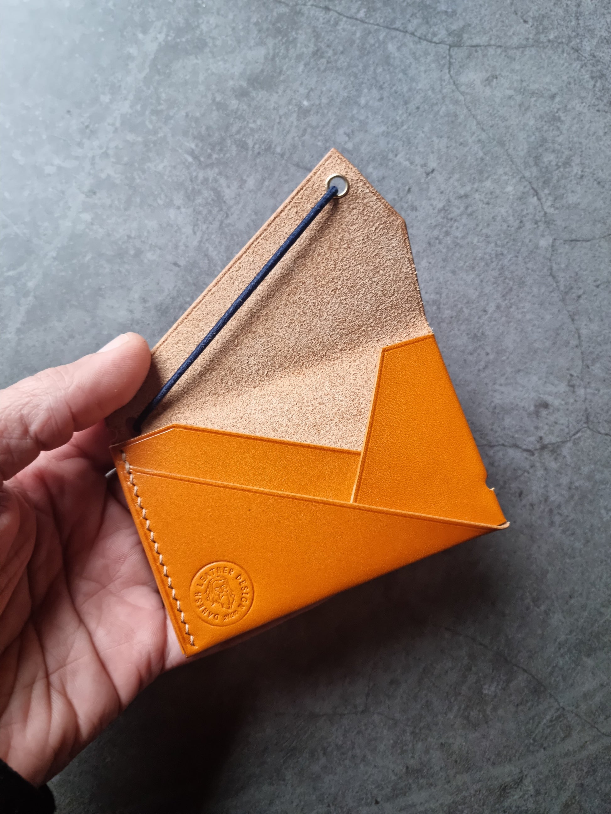 The Fálki is a one piece wallet Design, the pattern resembles a falcon, hence the name Fálki which means falcon in old Norse or today’s Icelandic. The design also has two main features. one is that it uses elastic cord as a closure, which gives it a very light and modern look. Second is that it is made with one piece folded in an origami technique. to apply that technique in leather, you’ll need to make grooves and skive the marked areas, this will make sure your folds are clean and crisp as in paper origami.
