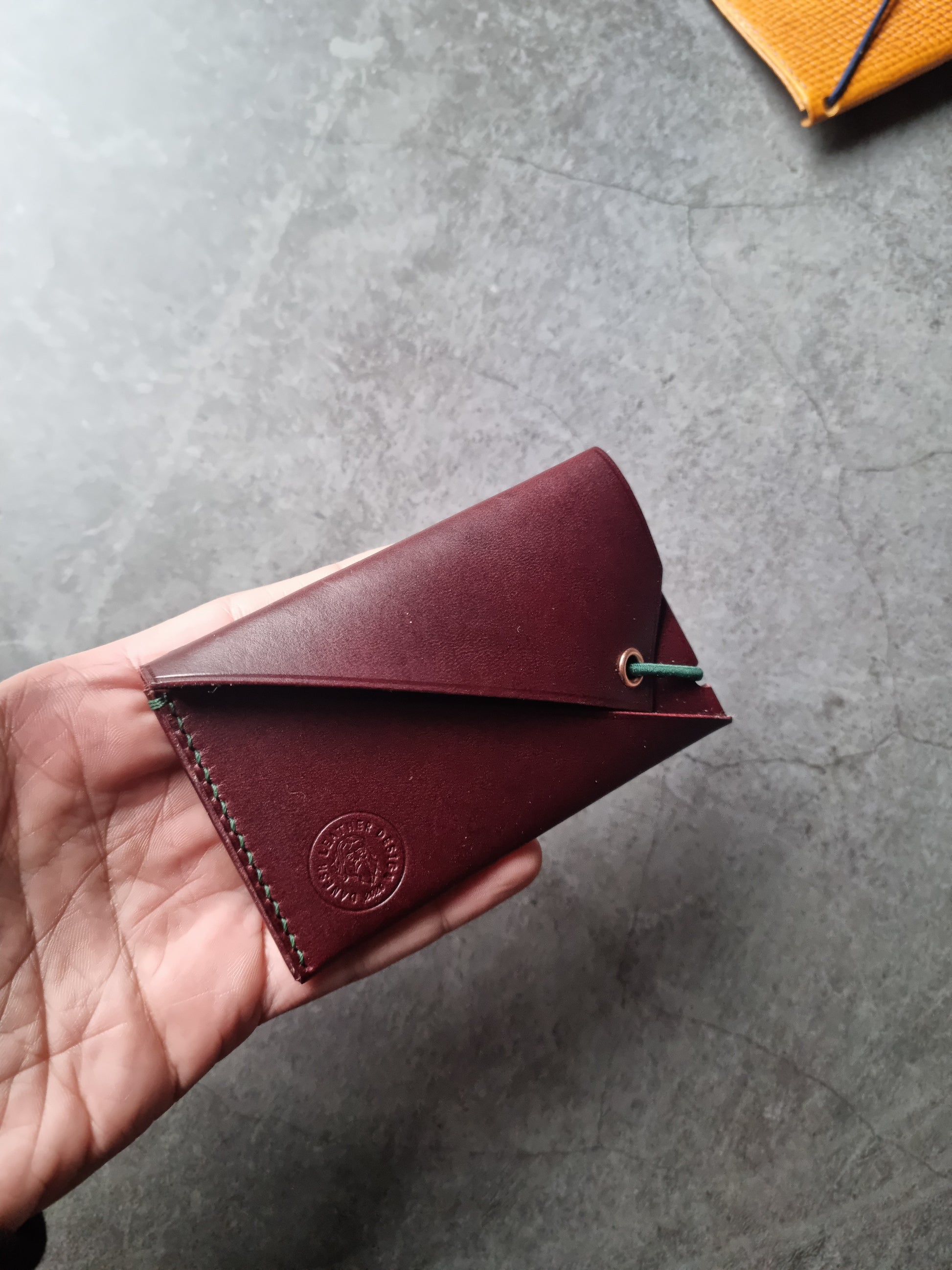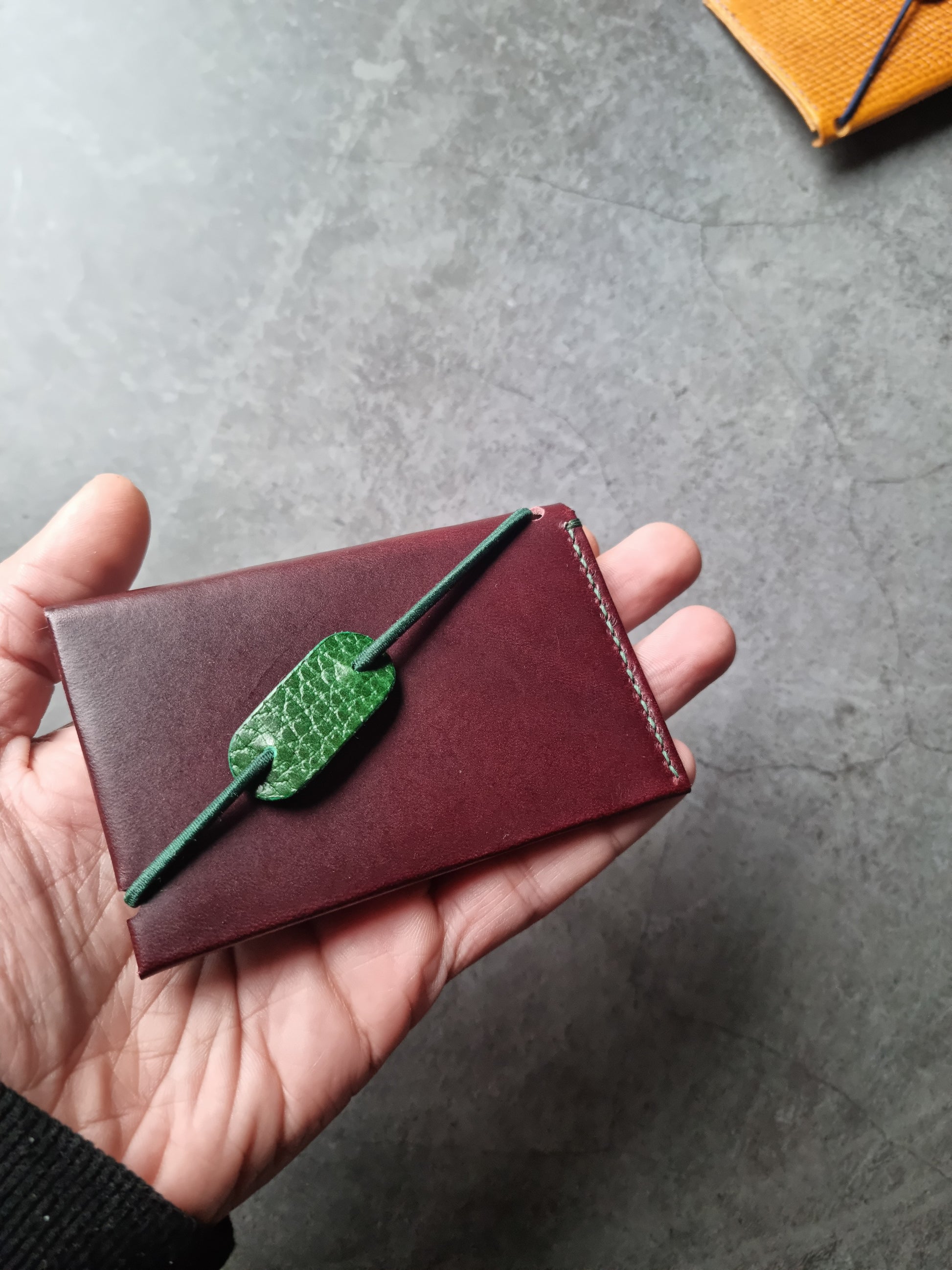 The pattern includes an optional piece to hold the elastic band on the back of the wallet, use the scraps from the main piece or use a different colour leather to create a contrasting effect.