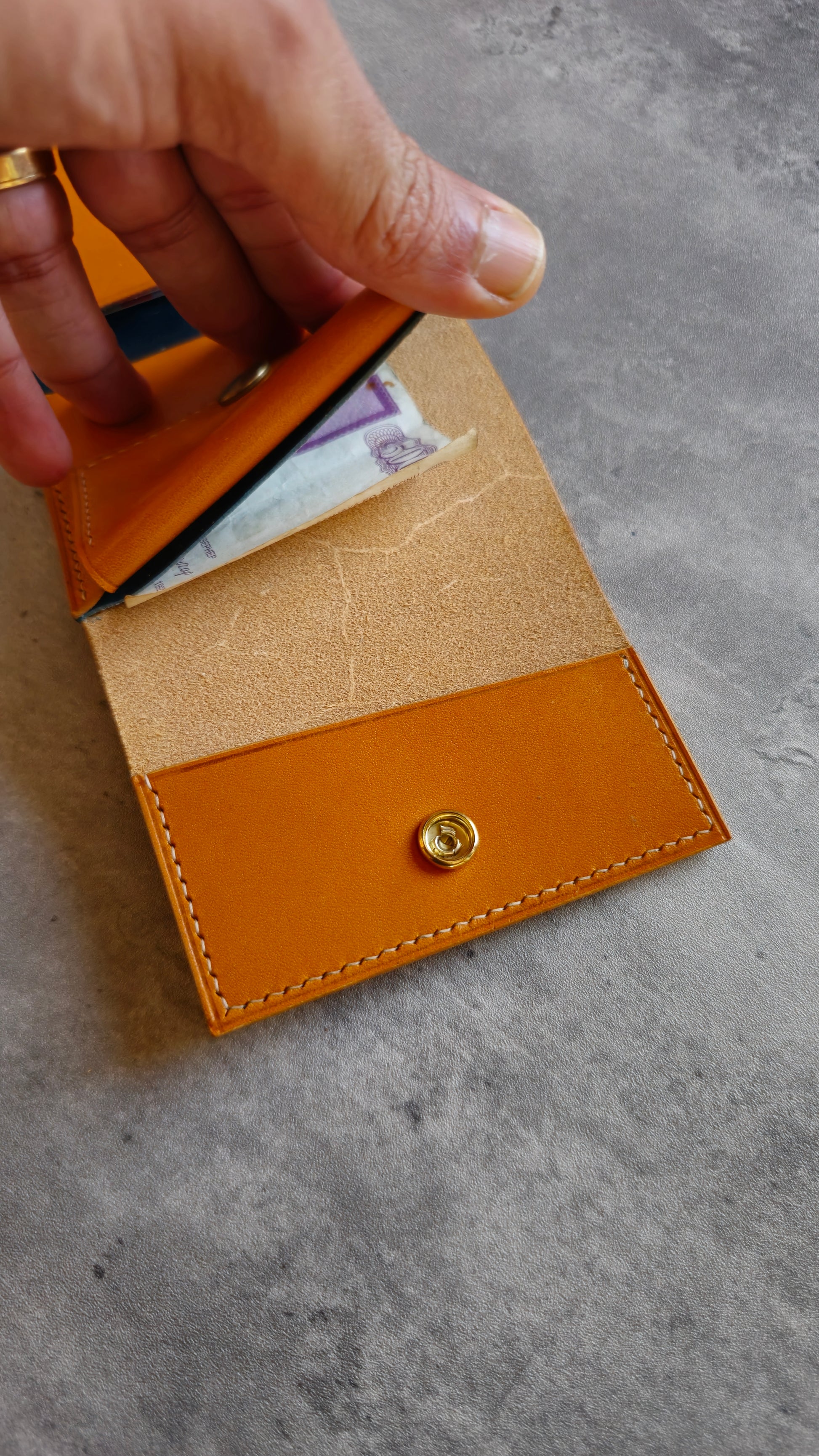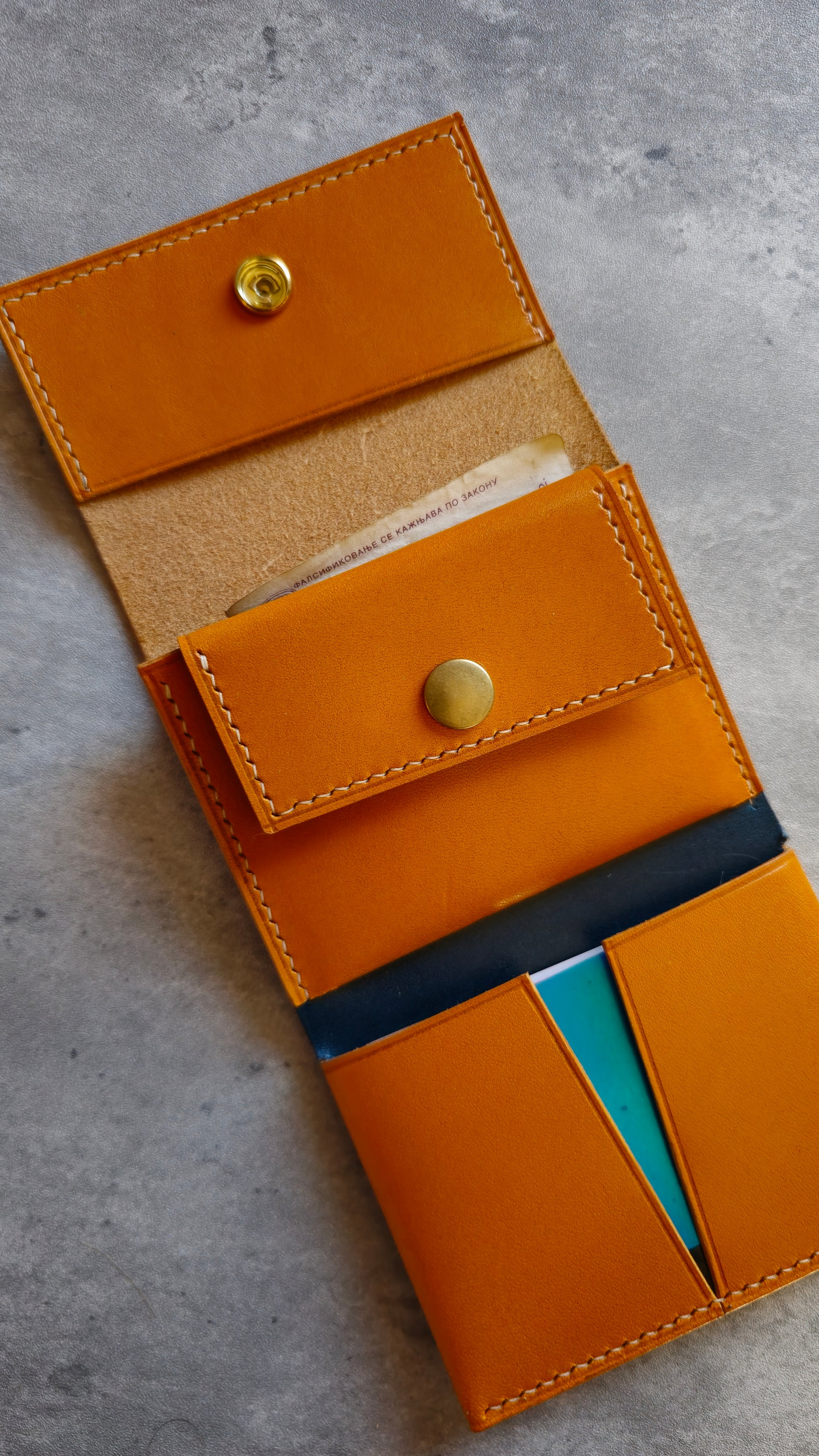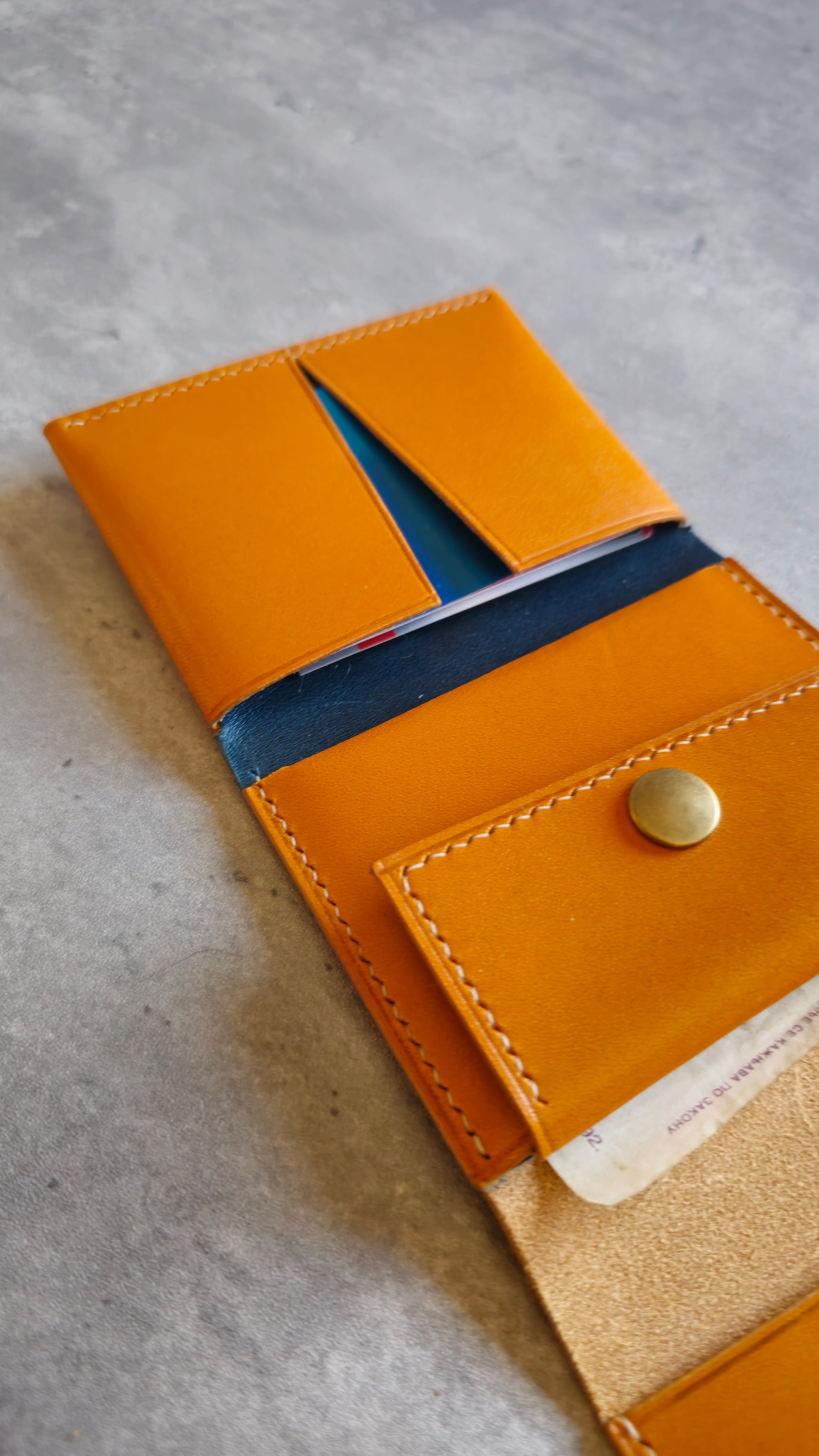 The Gunther is a minimalistic trifold wallet with a unique design. It features a large cards pocket, a coin pouch and a top slot for cash.