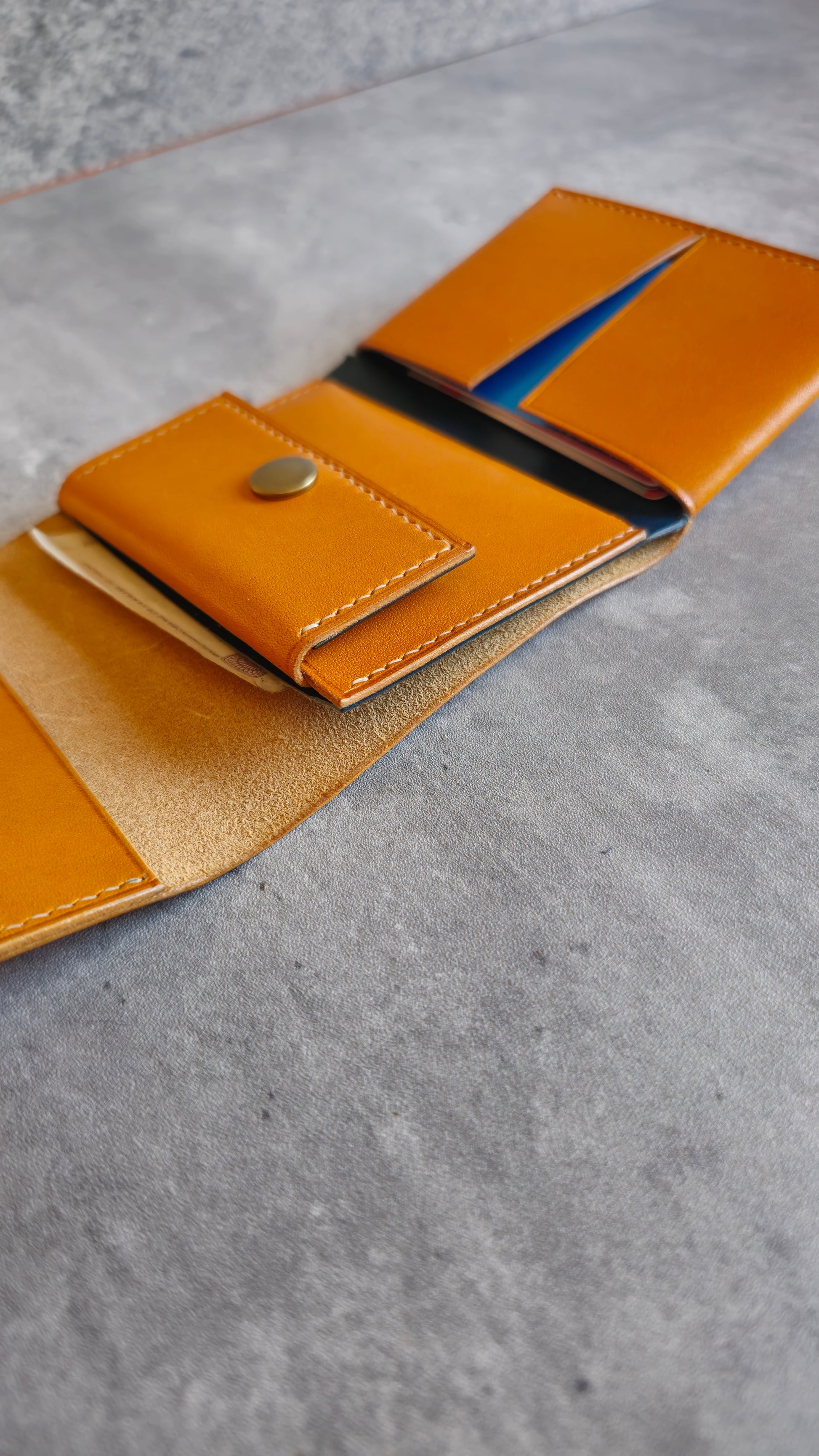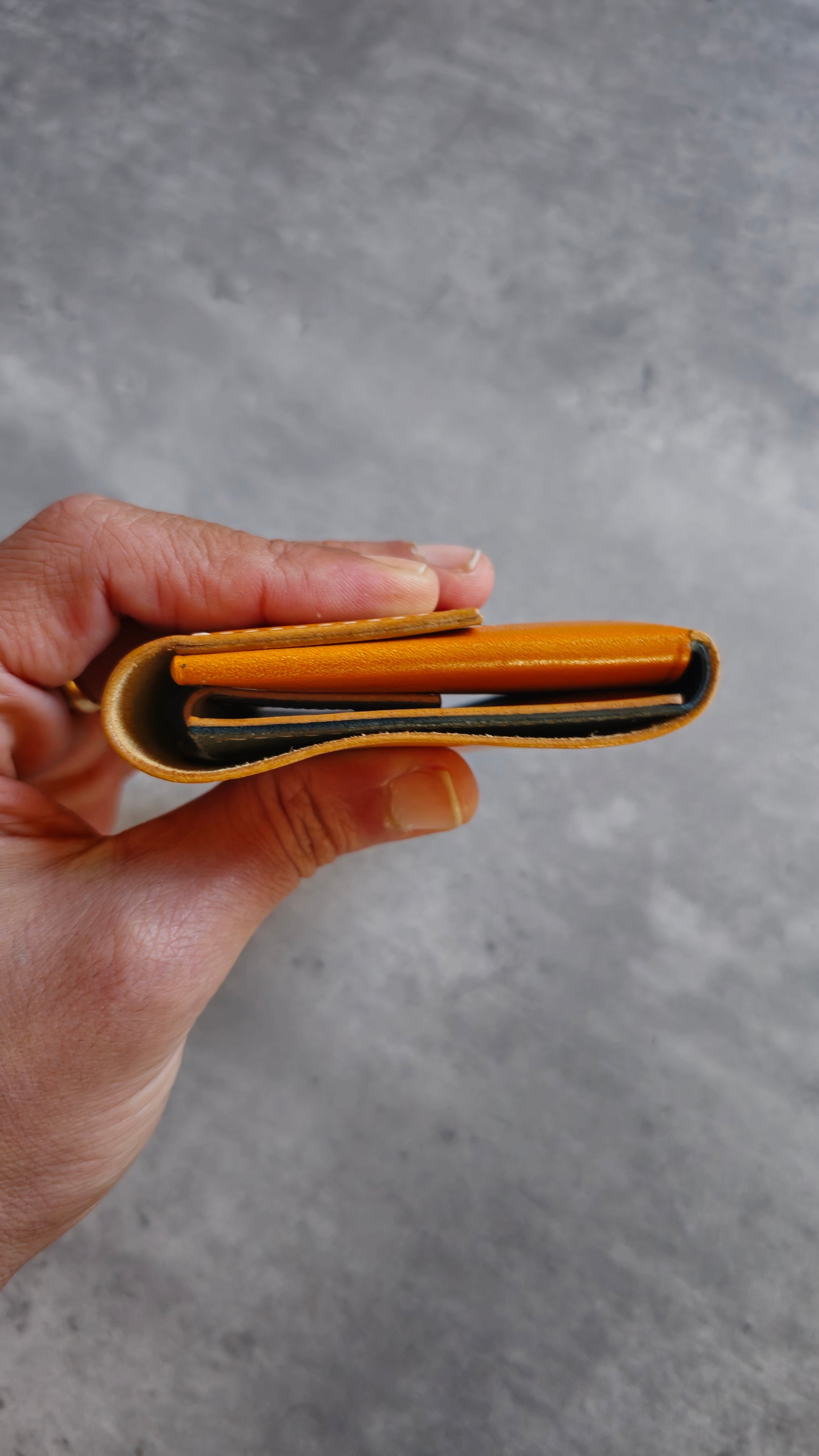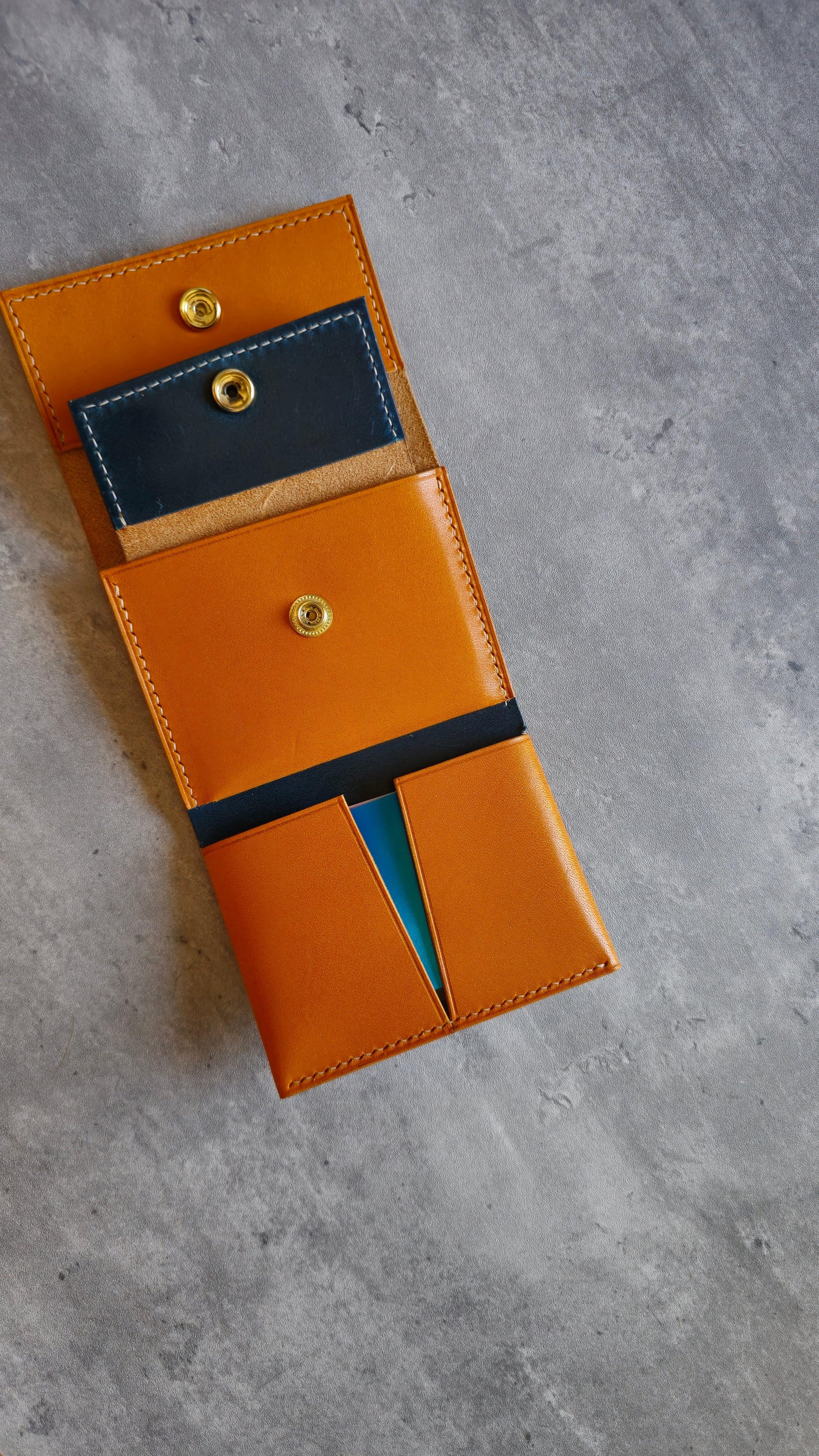The Gunther is a minimalistic trifold wallet with a unique design. It features a large cards pocket, a coin pouch and a top slot for cash.