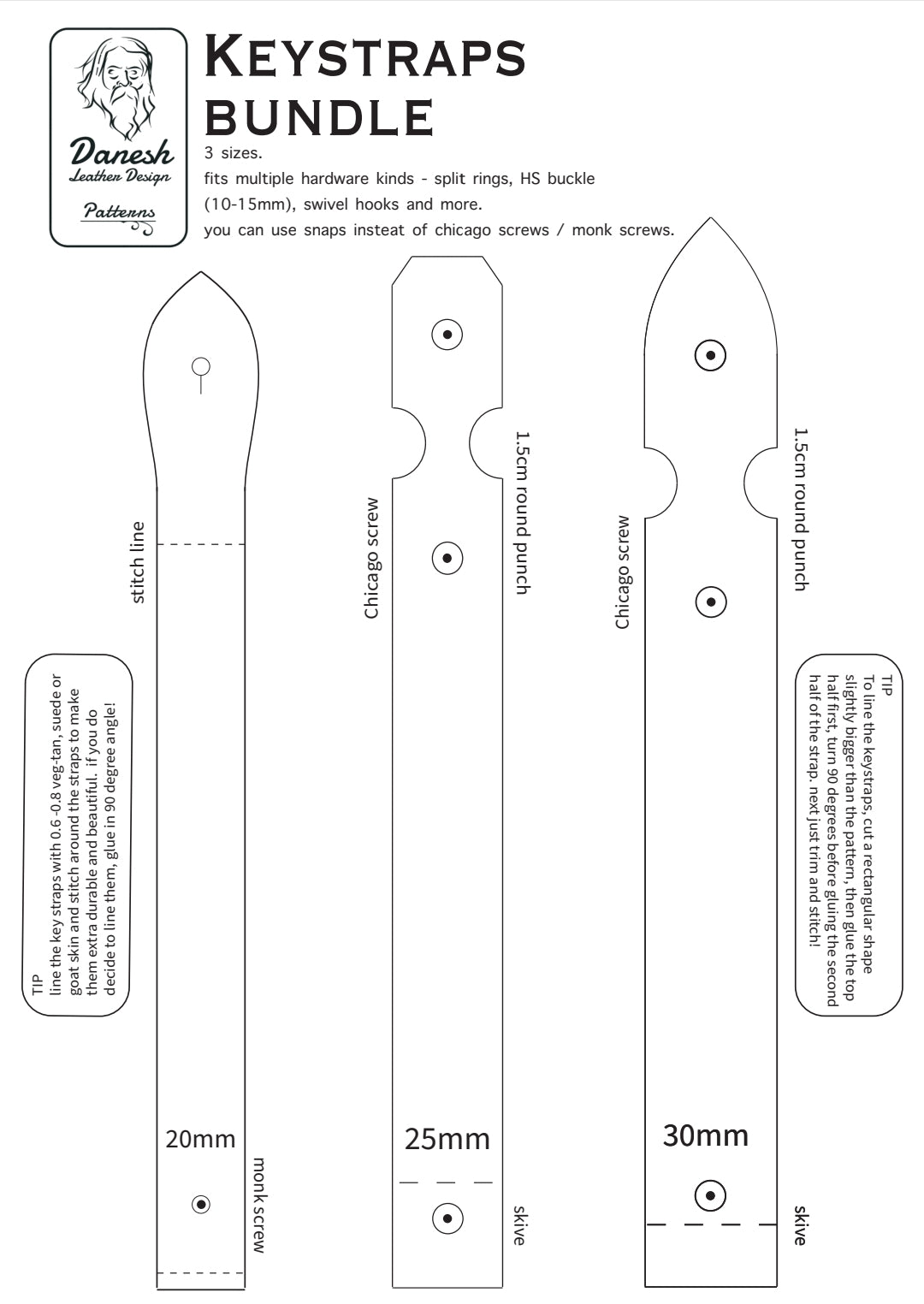 The 3 keystraps bundle contains 3 different sizes and designs, they are quite easy to create and are great for gifts, stocking fillers and of course retail.