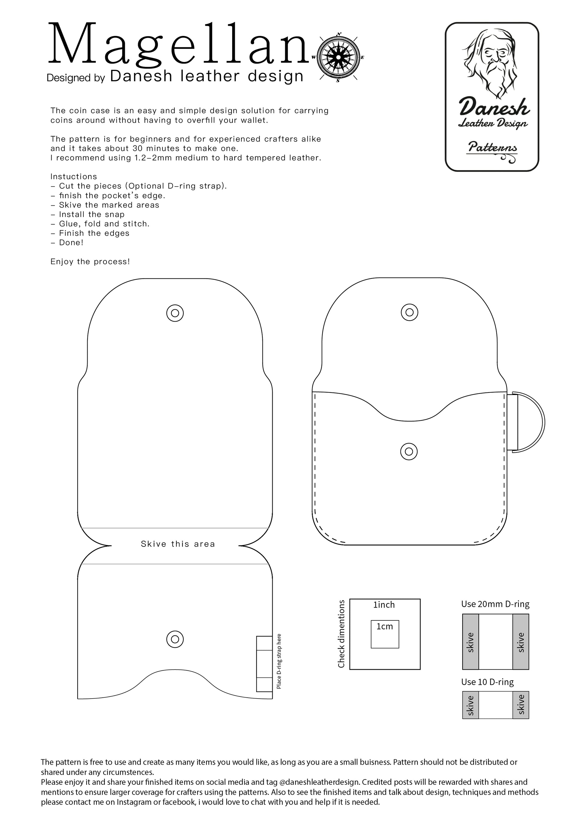 ย The Magellan is a mini coin case pattern made for beginners and advanced users alike. I recommend using 1.2 - 2mm medium to hard tempered leather.