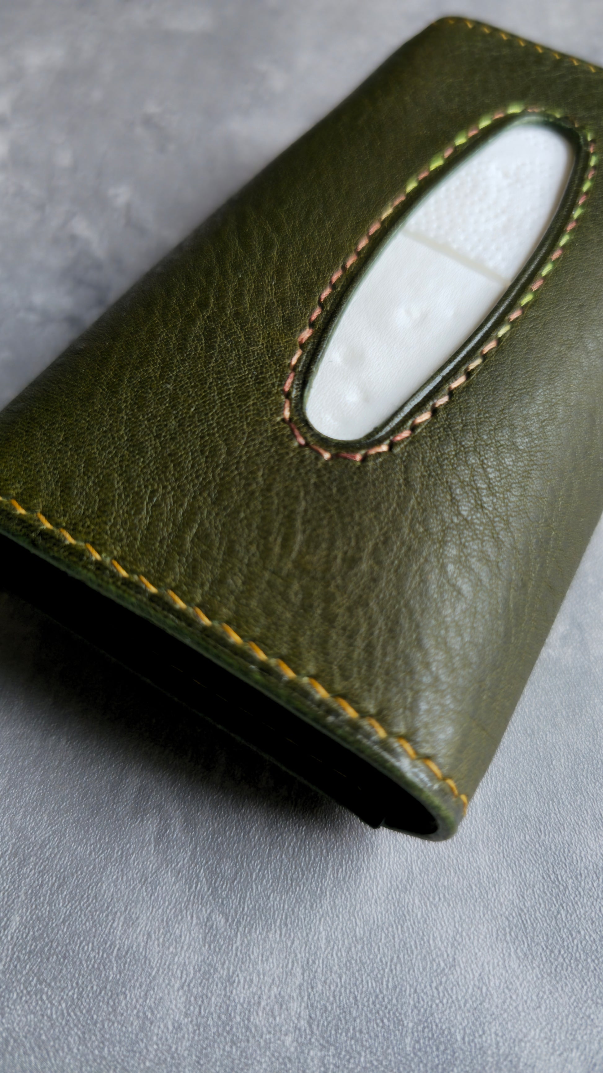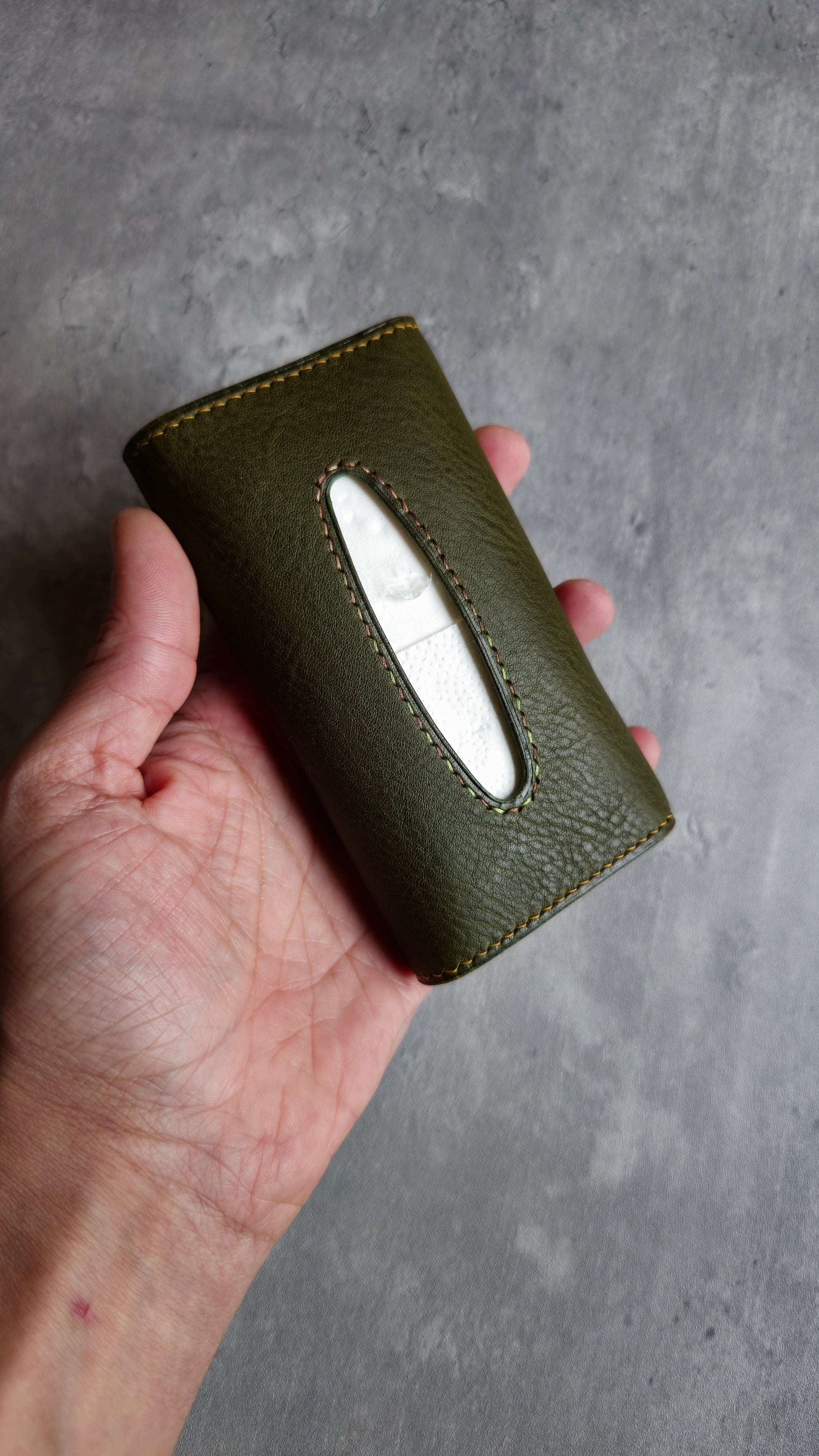The Polleō tissue case a wallet like tissue carry, it opens up like a wallet and tissues are easy to pick from the front cutout.