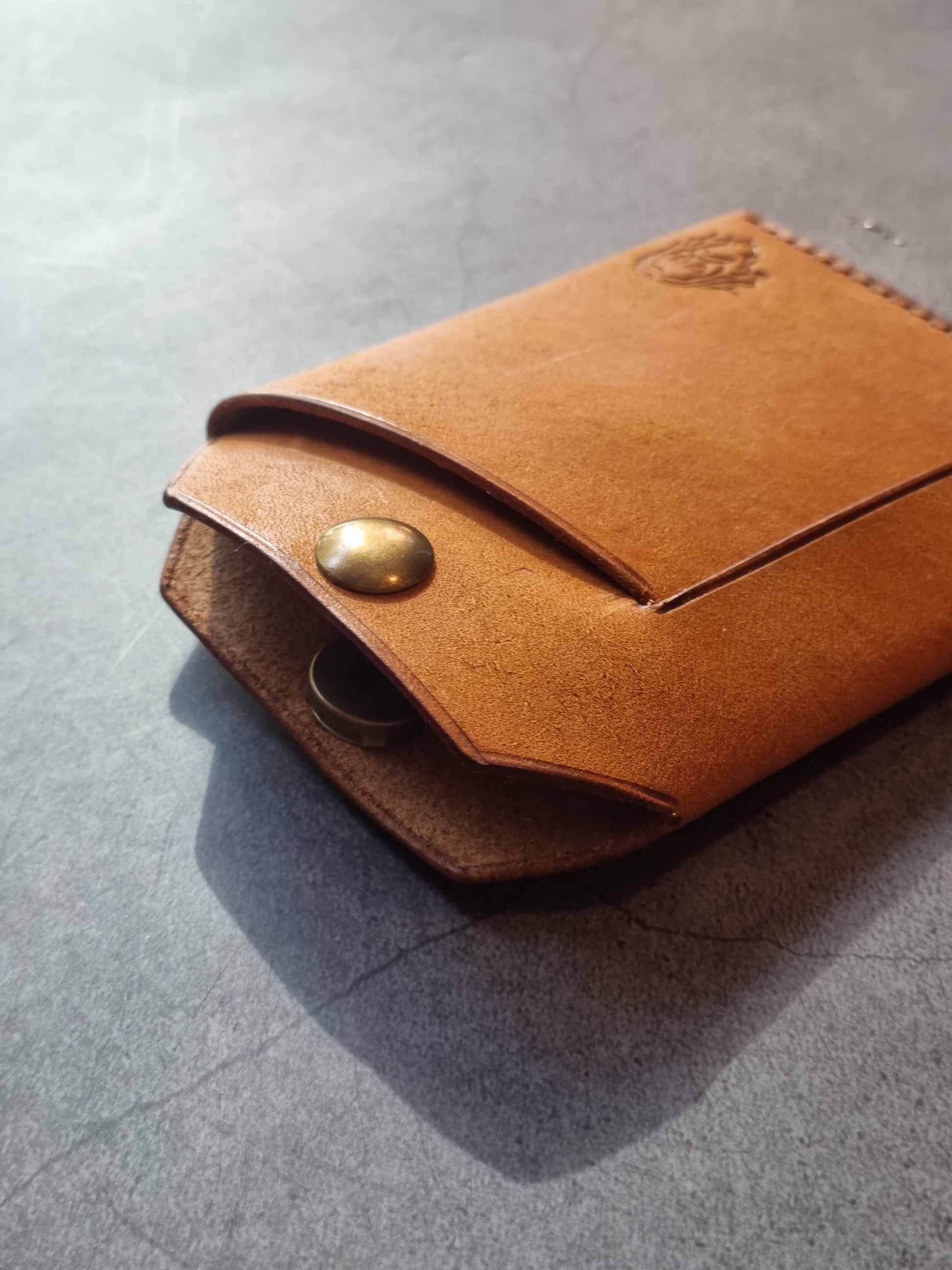 Making the Engineer is quite easy, it is made using one piece of leather folded in 2 places. The front pocket is extra roomy and can hold multiple cards, there is a back pocket and the main case which holds cash and coins.