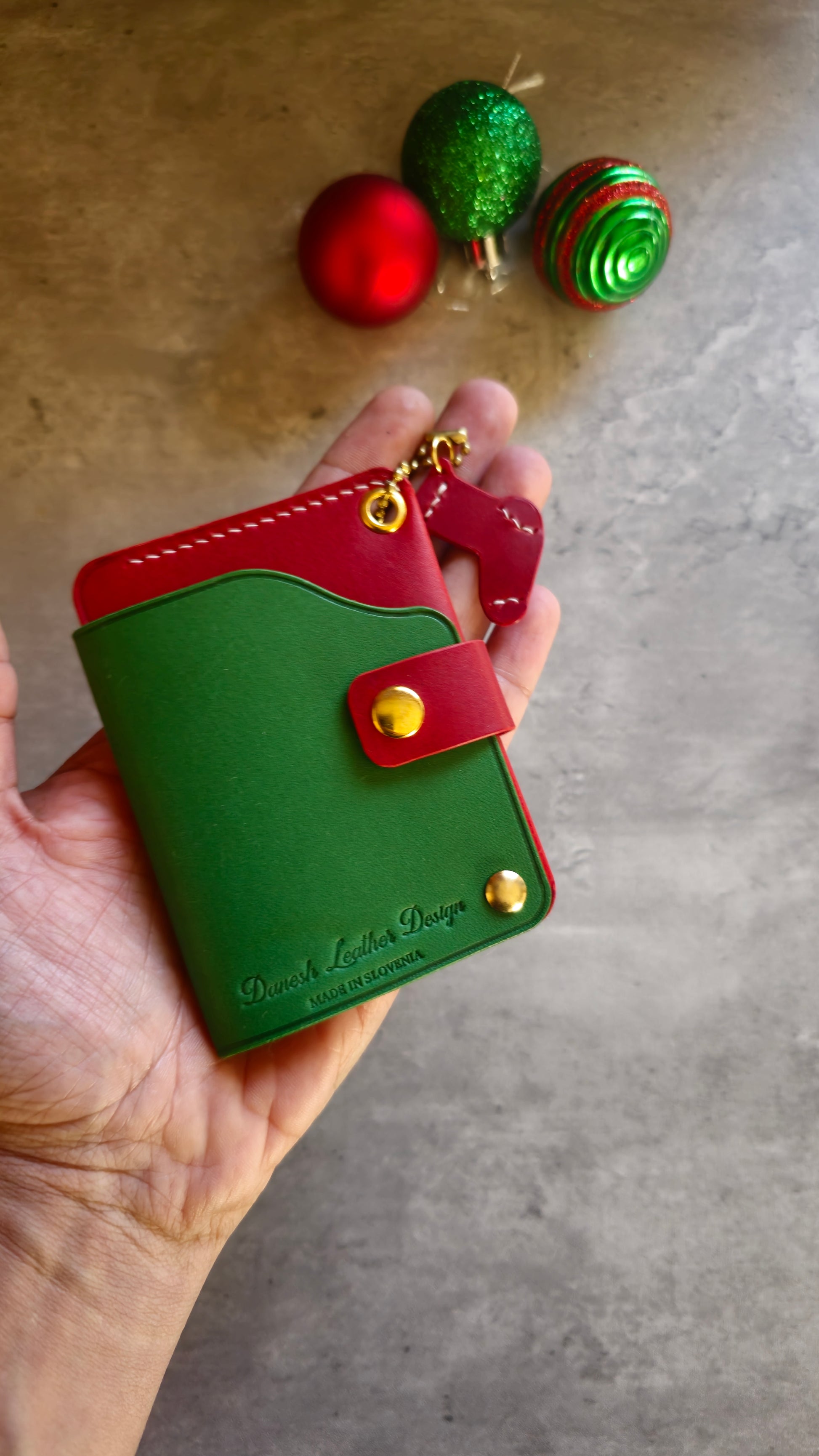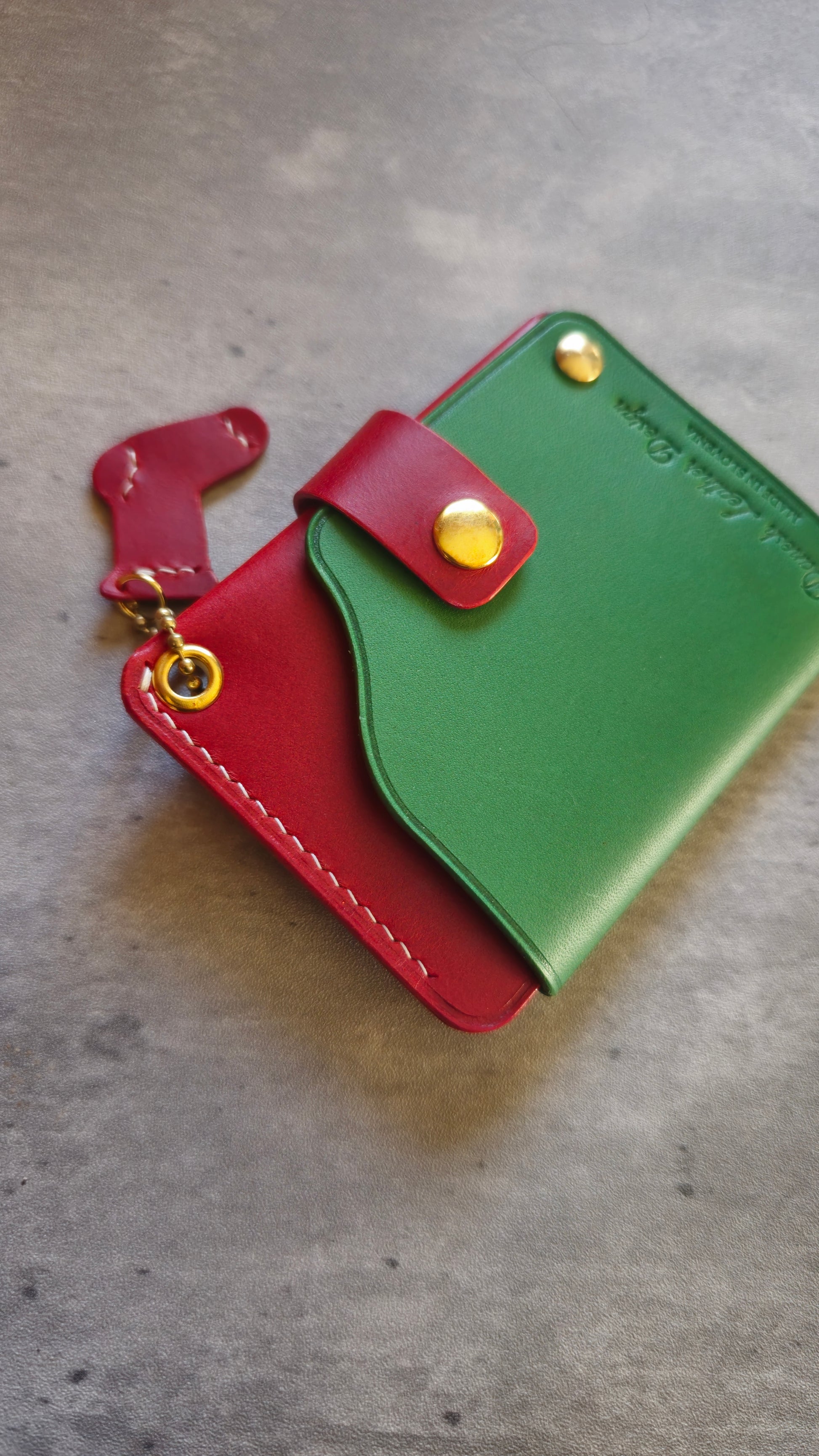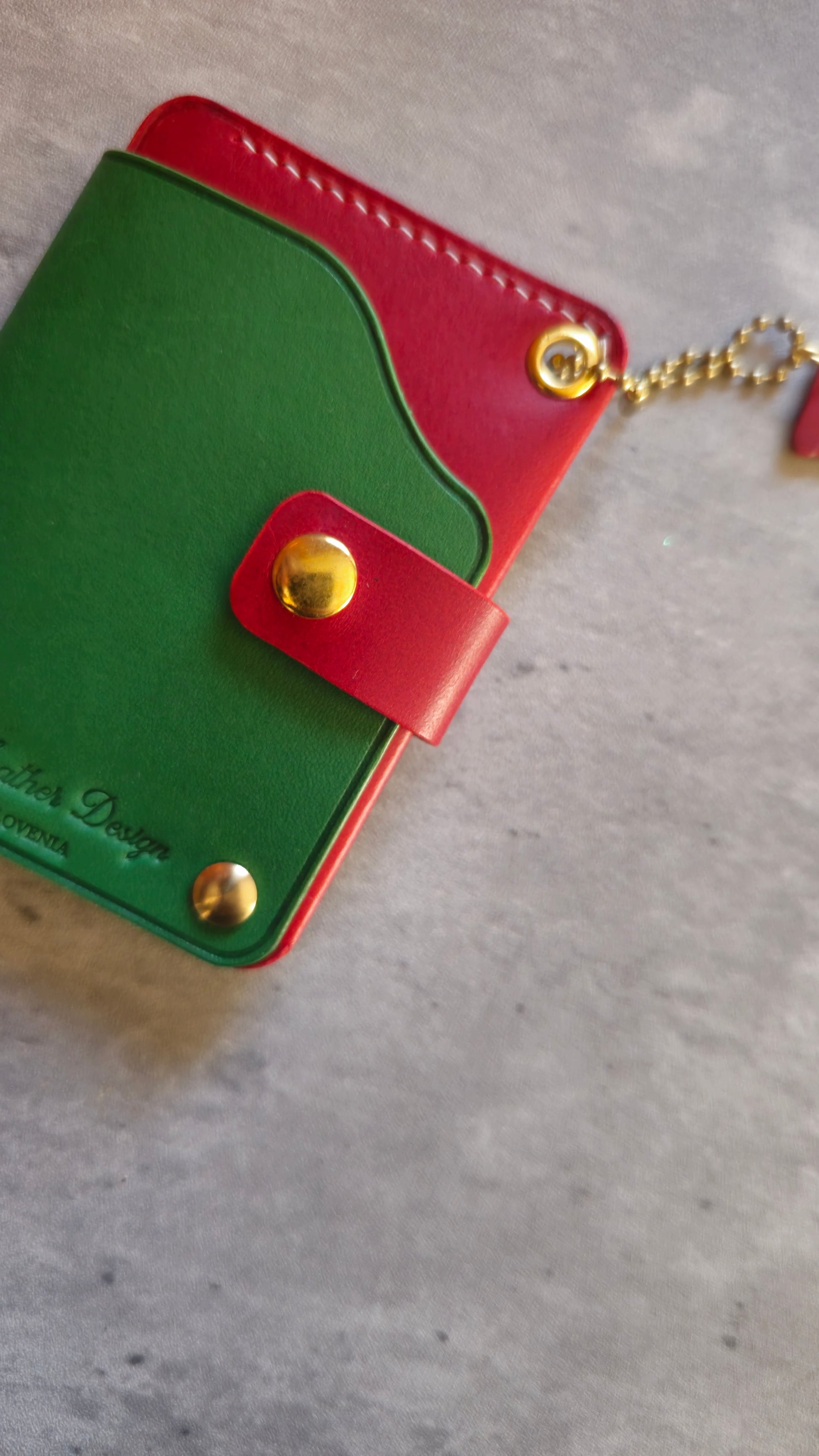 Fun and attractive design for a mini axis wallet. The Krampus opens up from the side and it has plenty of space for cards and cash. The cards are super secure inside with an extra strap and snap.