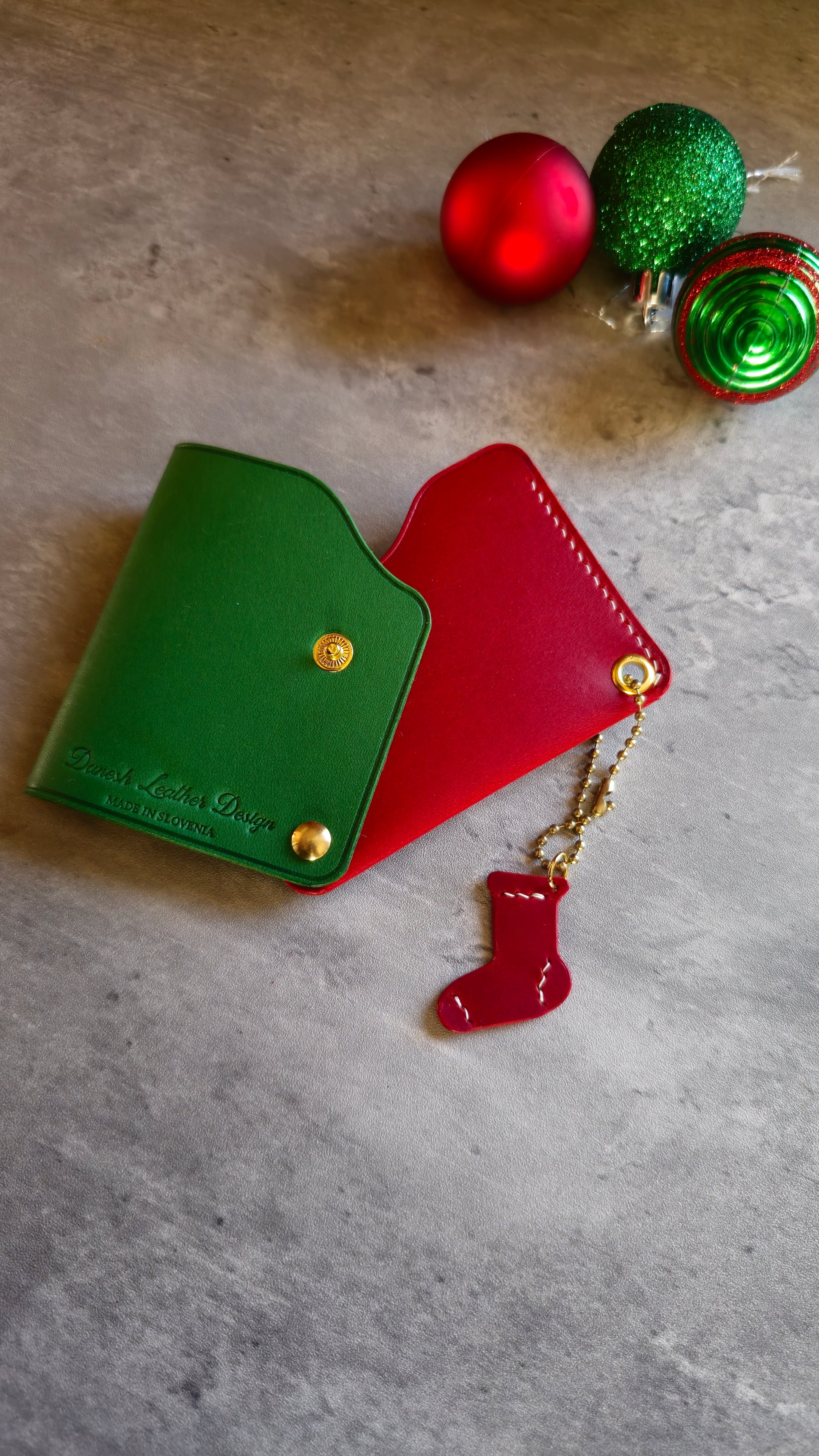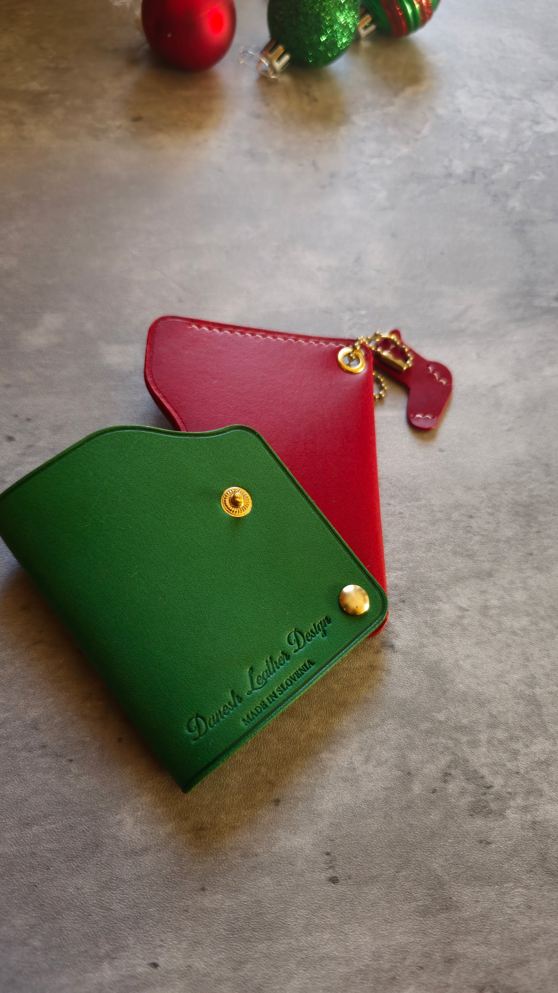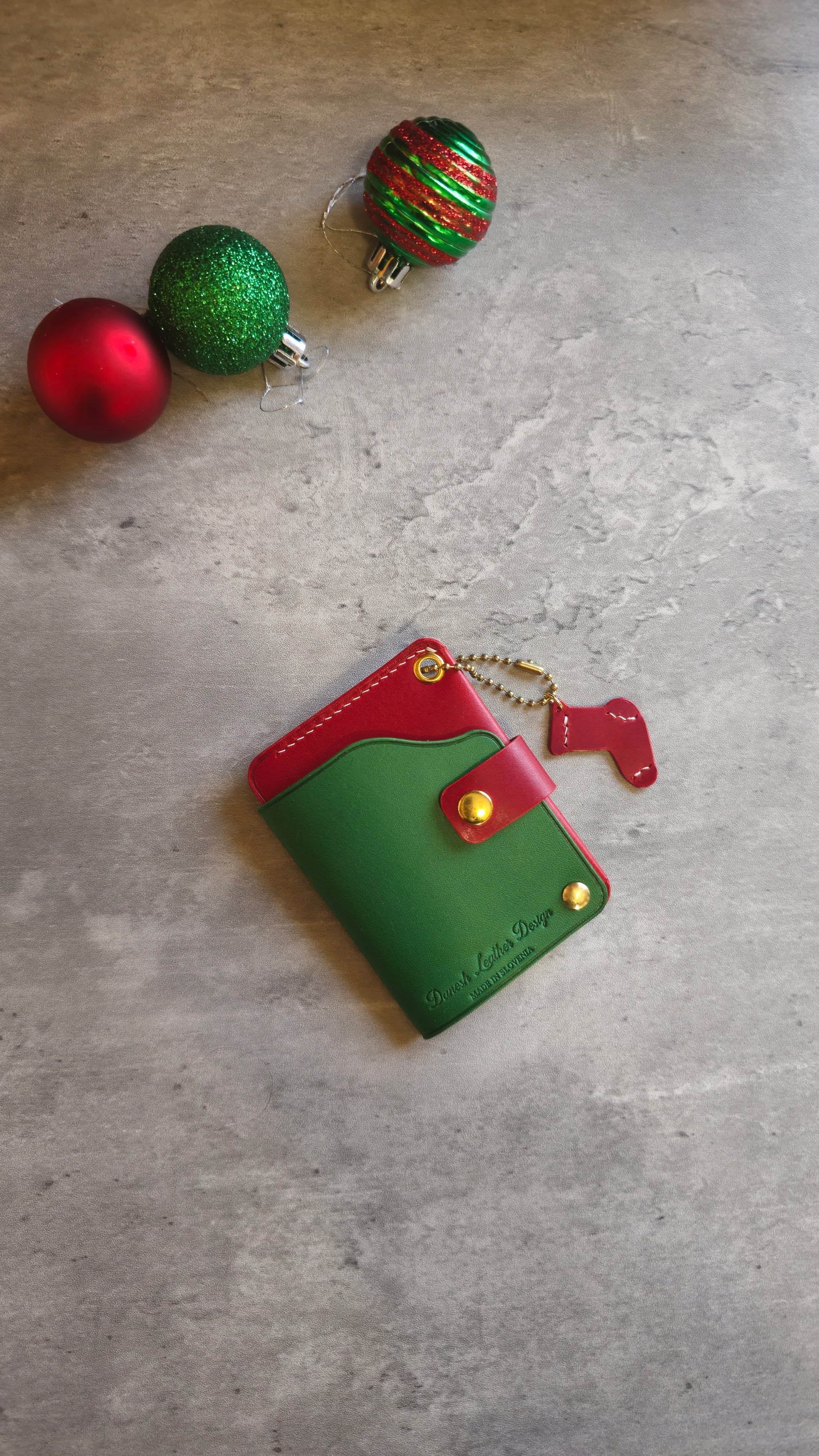Fun and attractive design for a mini axis wallet. The Krampus opens up from the side and it has plenty of space for cards and cash. The cards are super secure inside with an extra strap and snap.