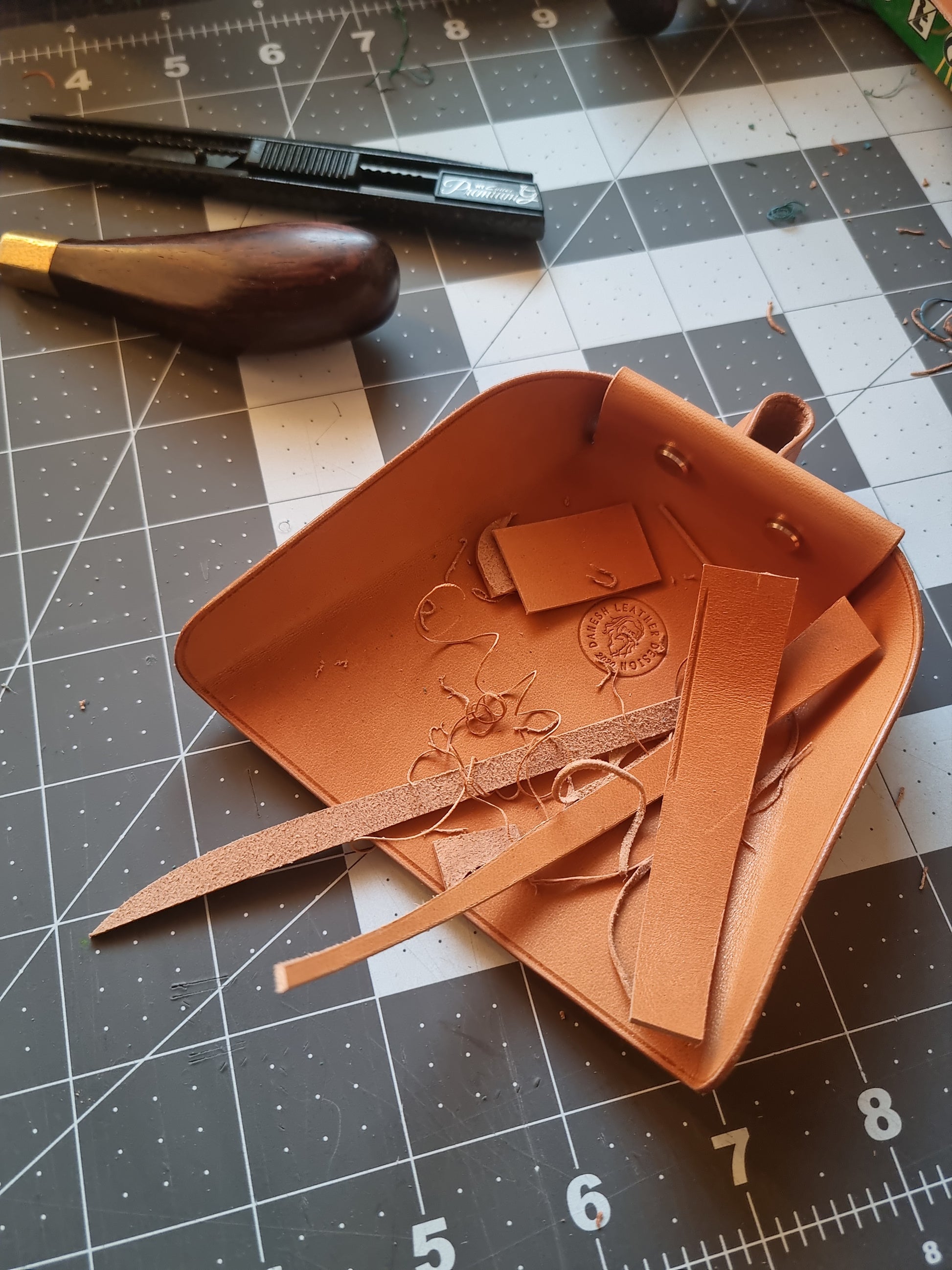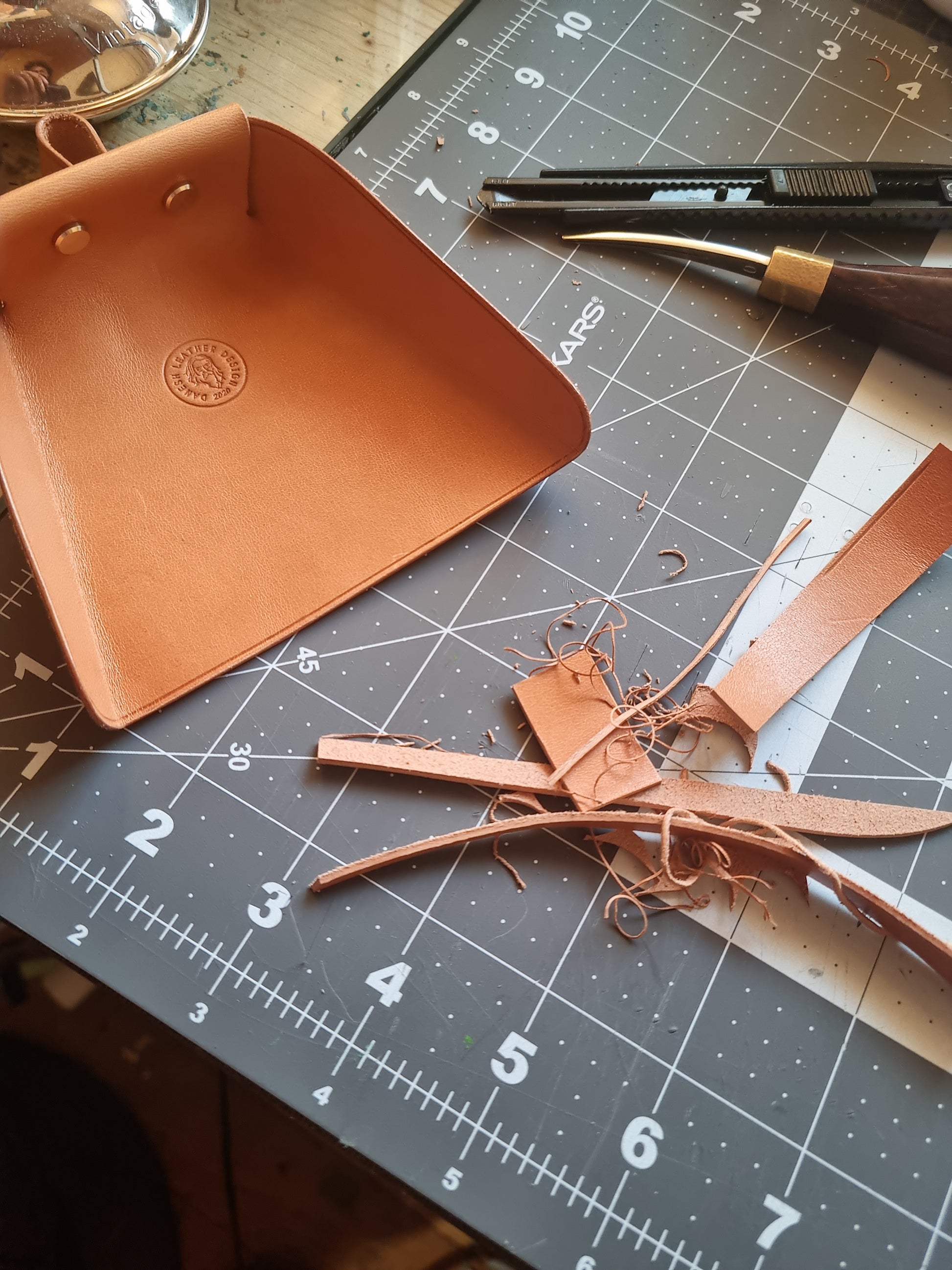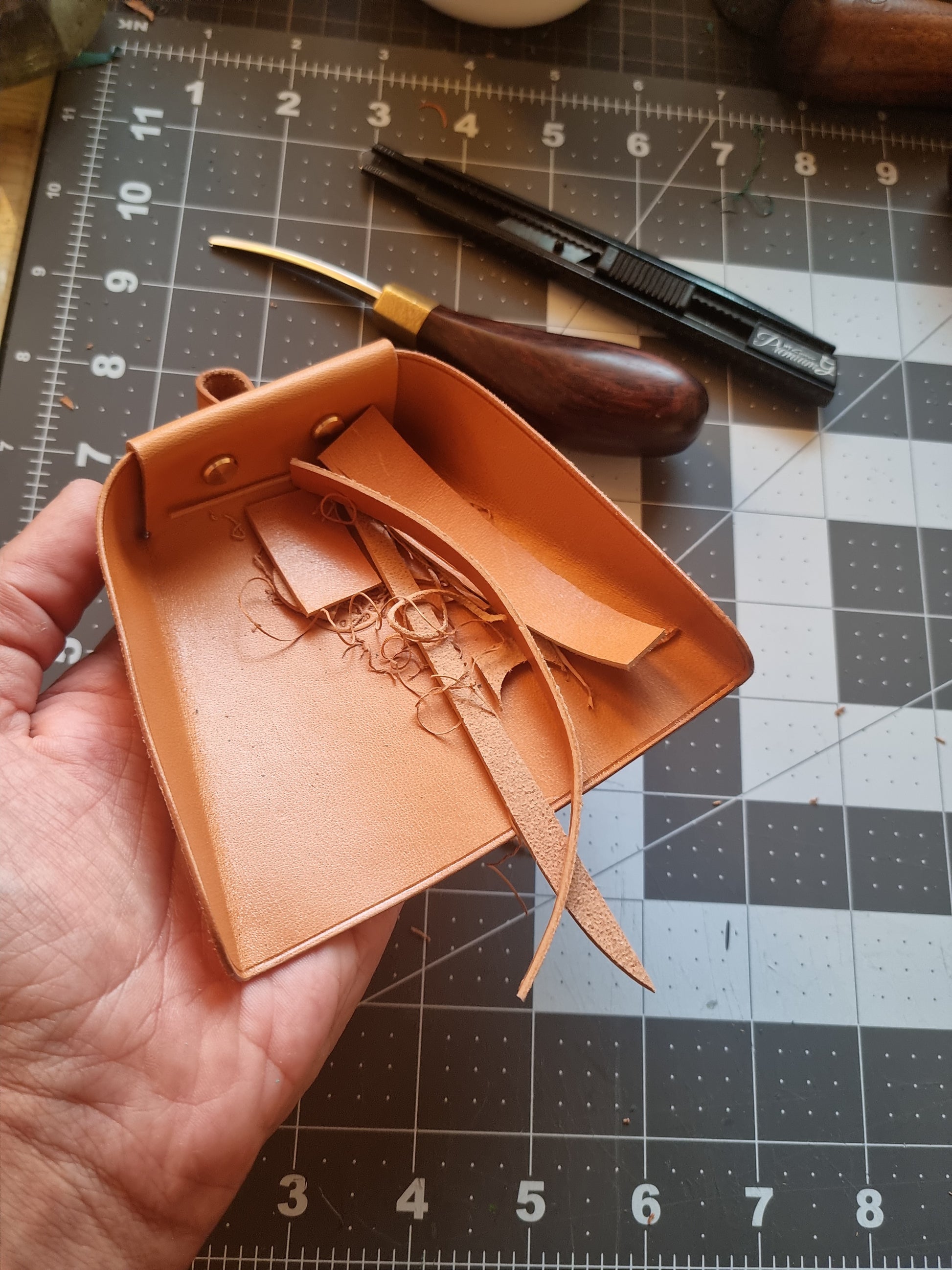 A simple but fun project that gives you an indispensable bench top sized waste scooper. Thank you Danesh leather!
