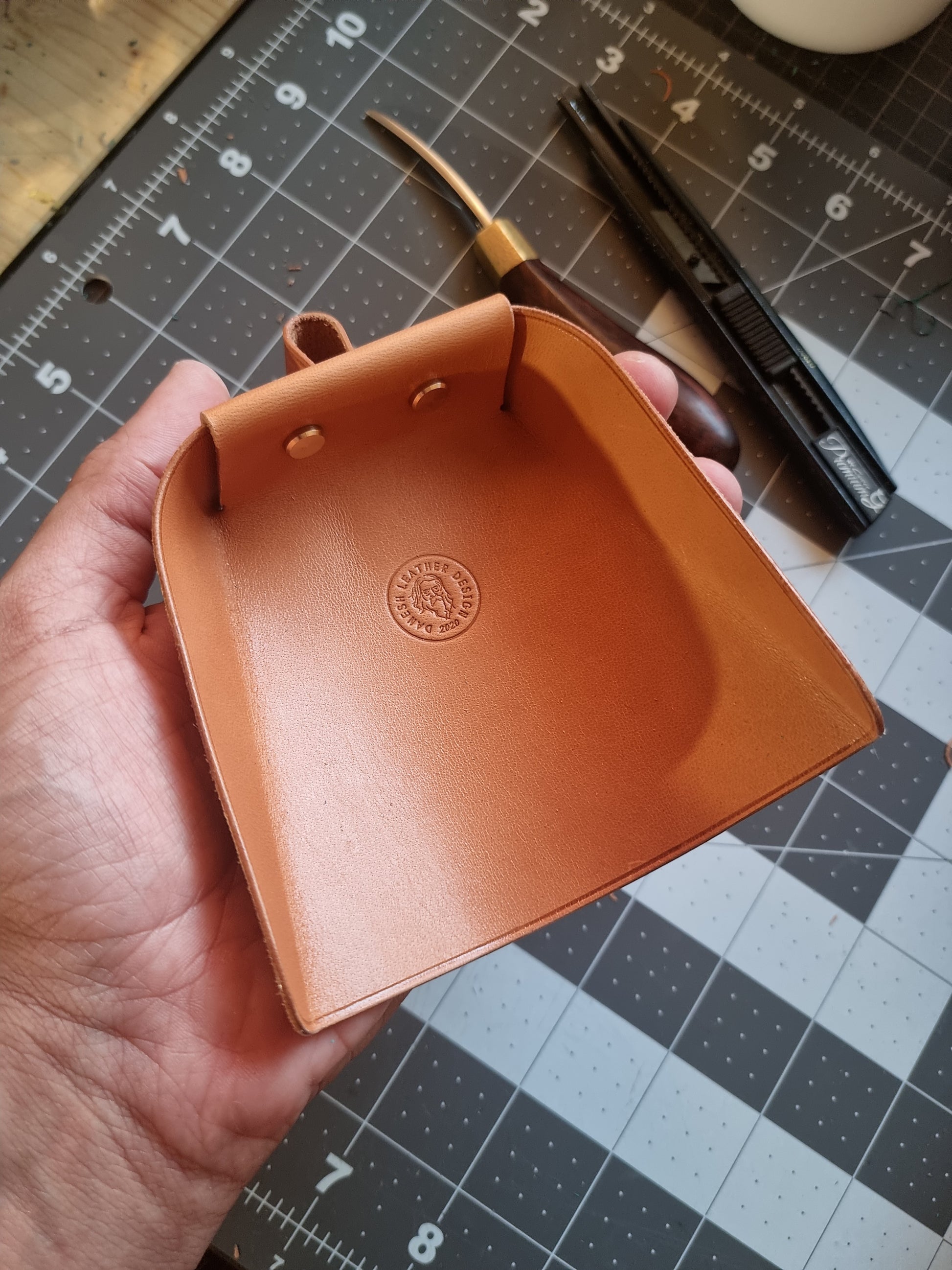 I love this little tool. It helps me keep my work area neat and rubbish free while looking perfect among my leather crafts. Thank you for this template!