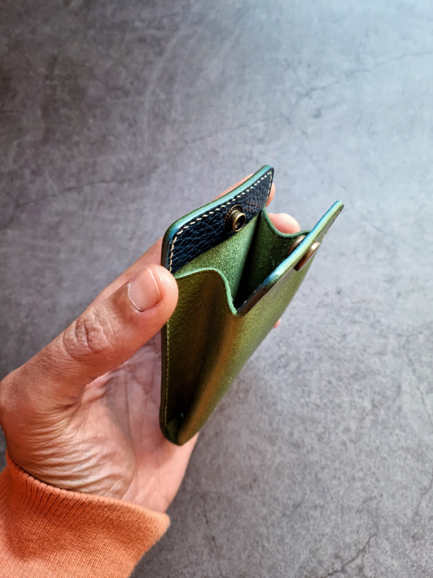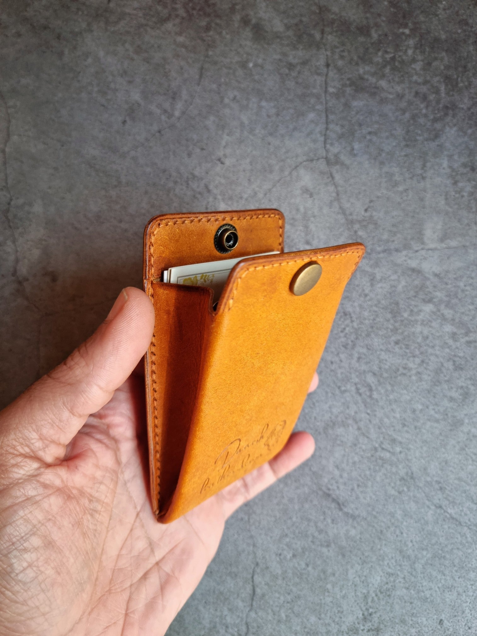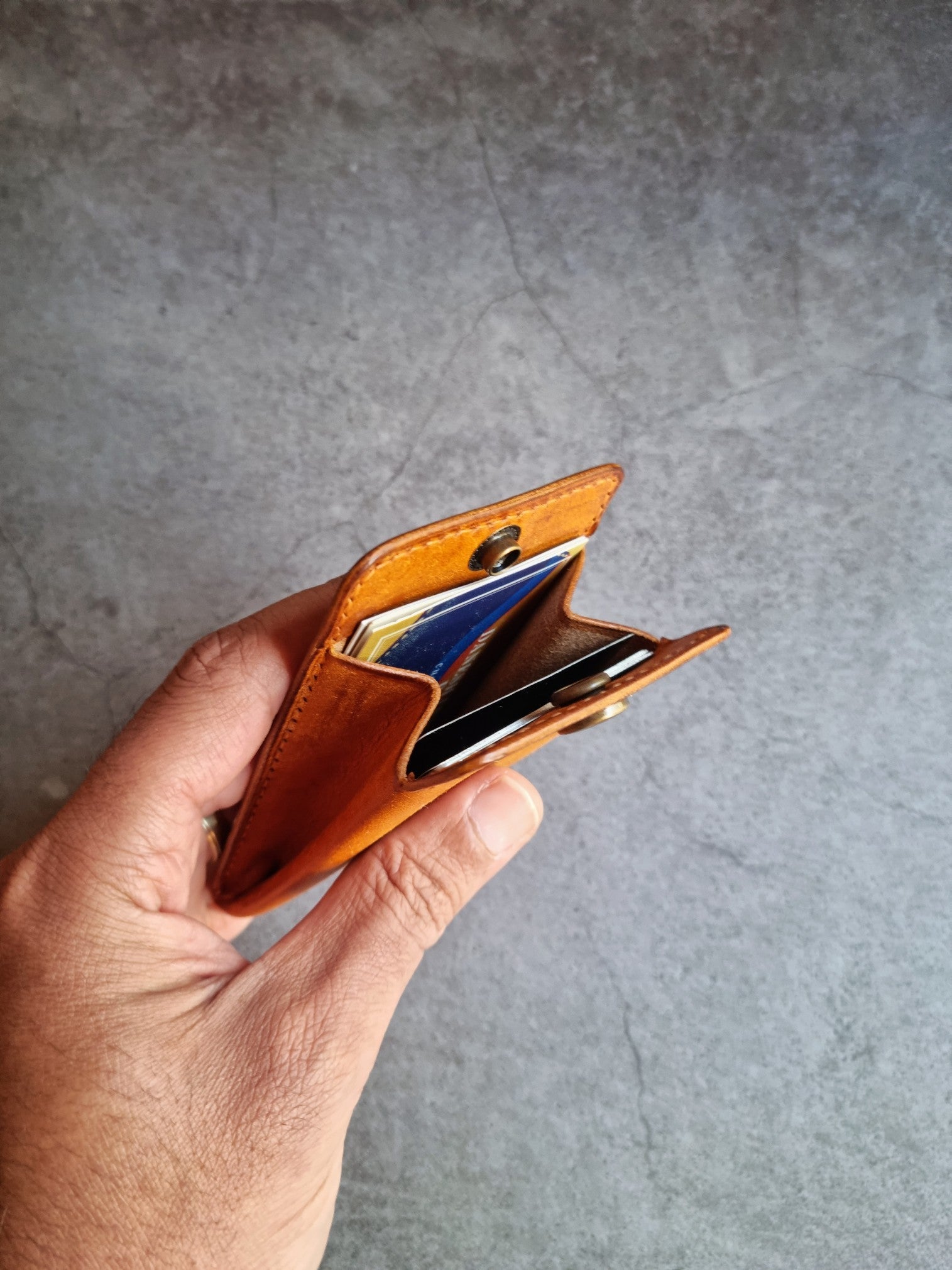 The Snapper is a simple yet practical and comfortable snap wallet, featuring a double built-in gussets that allow an easy reach.