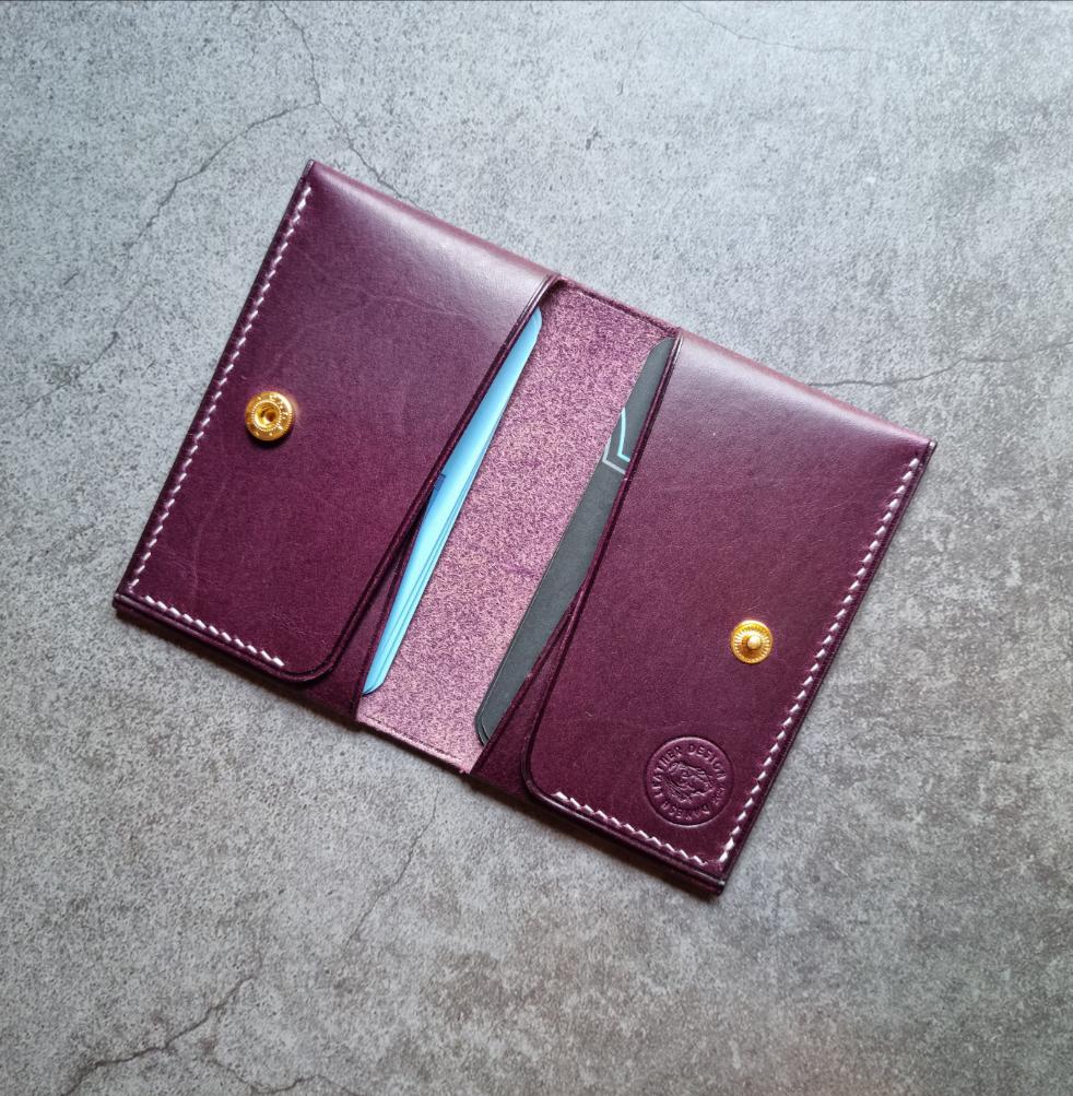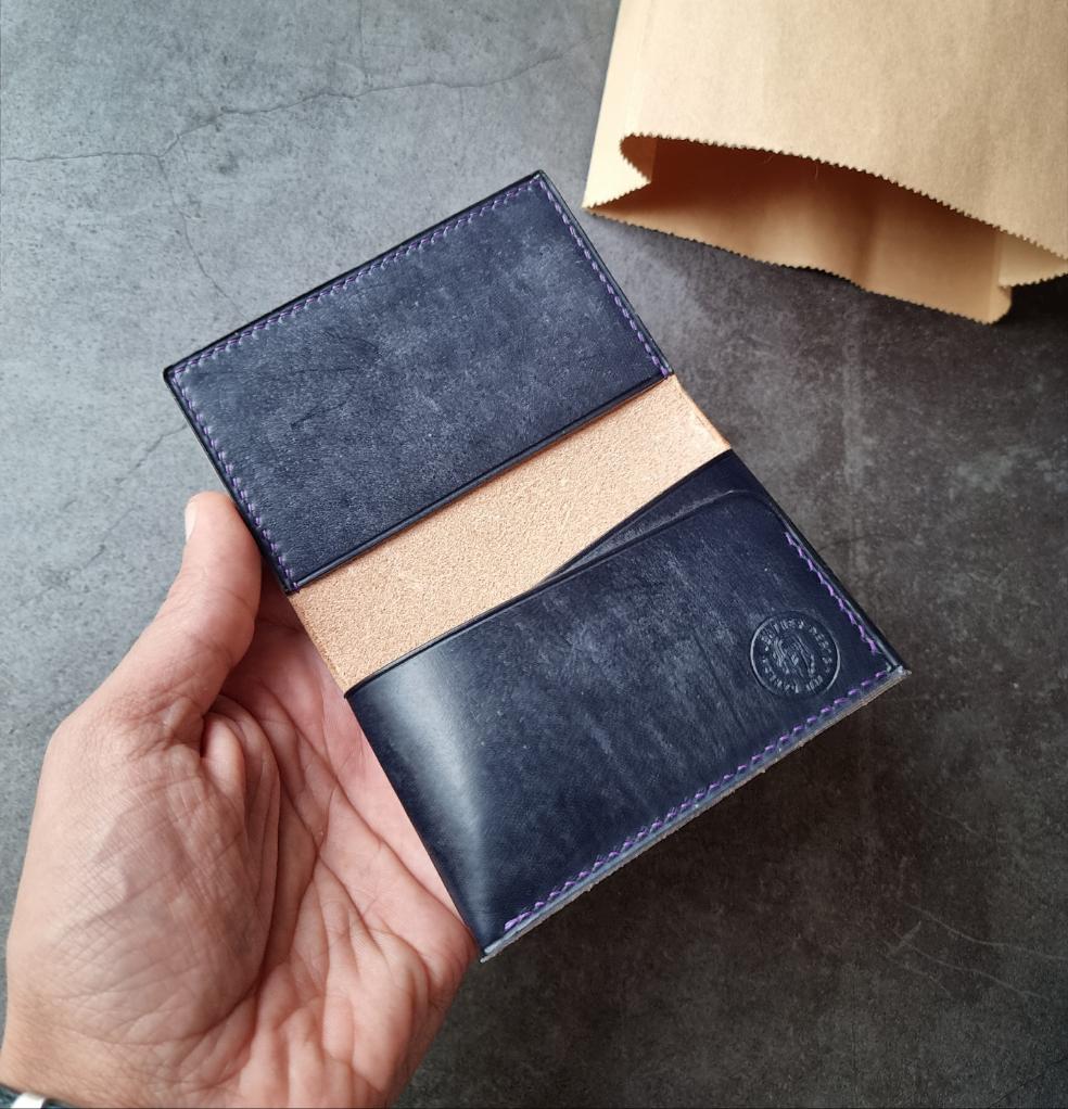The H&T wallets are designed to carry a large amount of cards and cash at the minimal size possible. The H-Wallet is made from a single piece of leather and it arrives with a bonus keychain pattern to use from the projectโ€™s scraps. It has 4 pockets which are wide and spacious. The T-Wallet is a two piece design with a classic pocket, it is a bit slimmer with a total of 3 pockets. You can also choose to create a forth pocket on the back of the wallet.